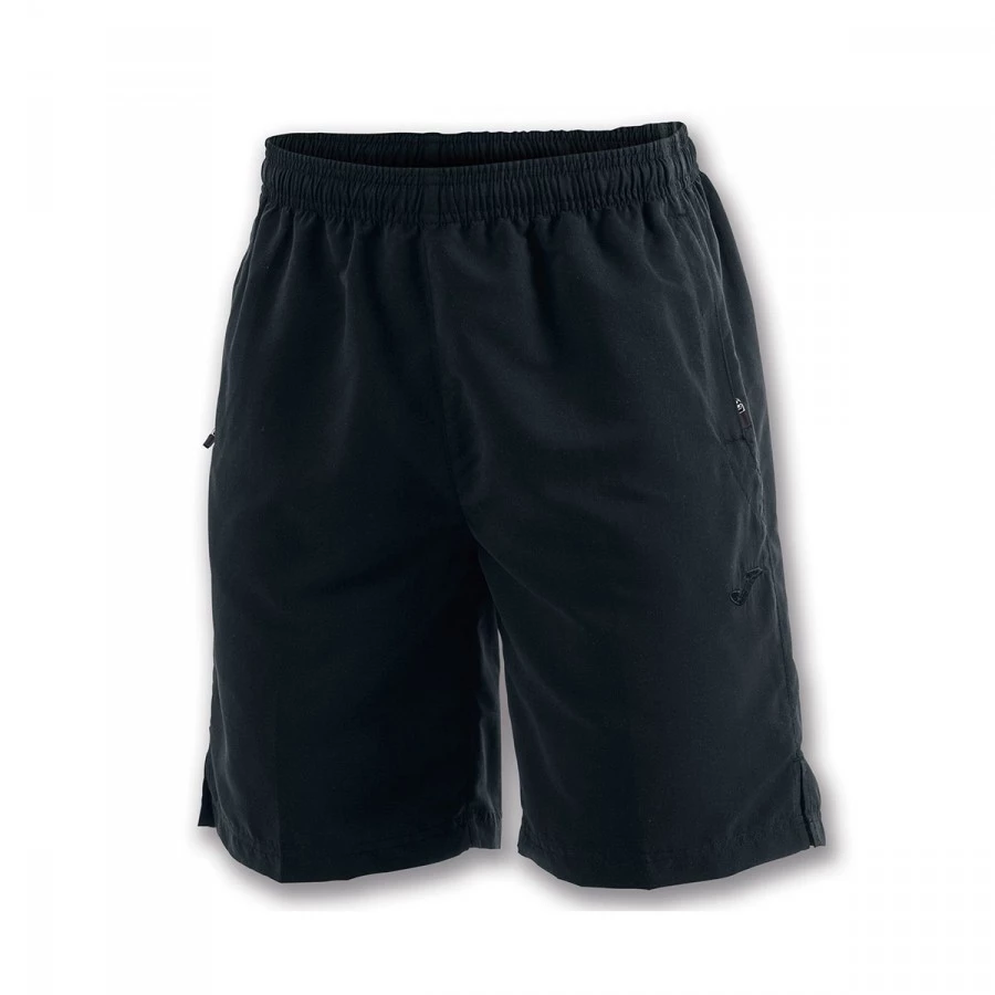 Bermuda con apertura laterale e tasche laterali con cerniera. Cintura elastica con laccio per regolarli.