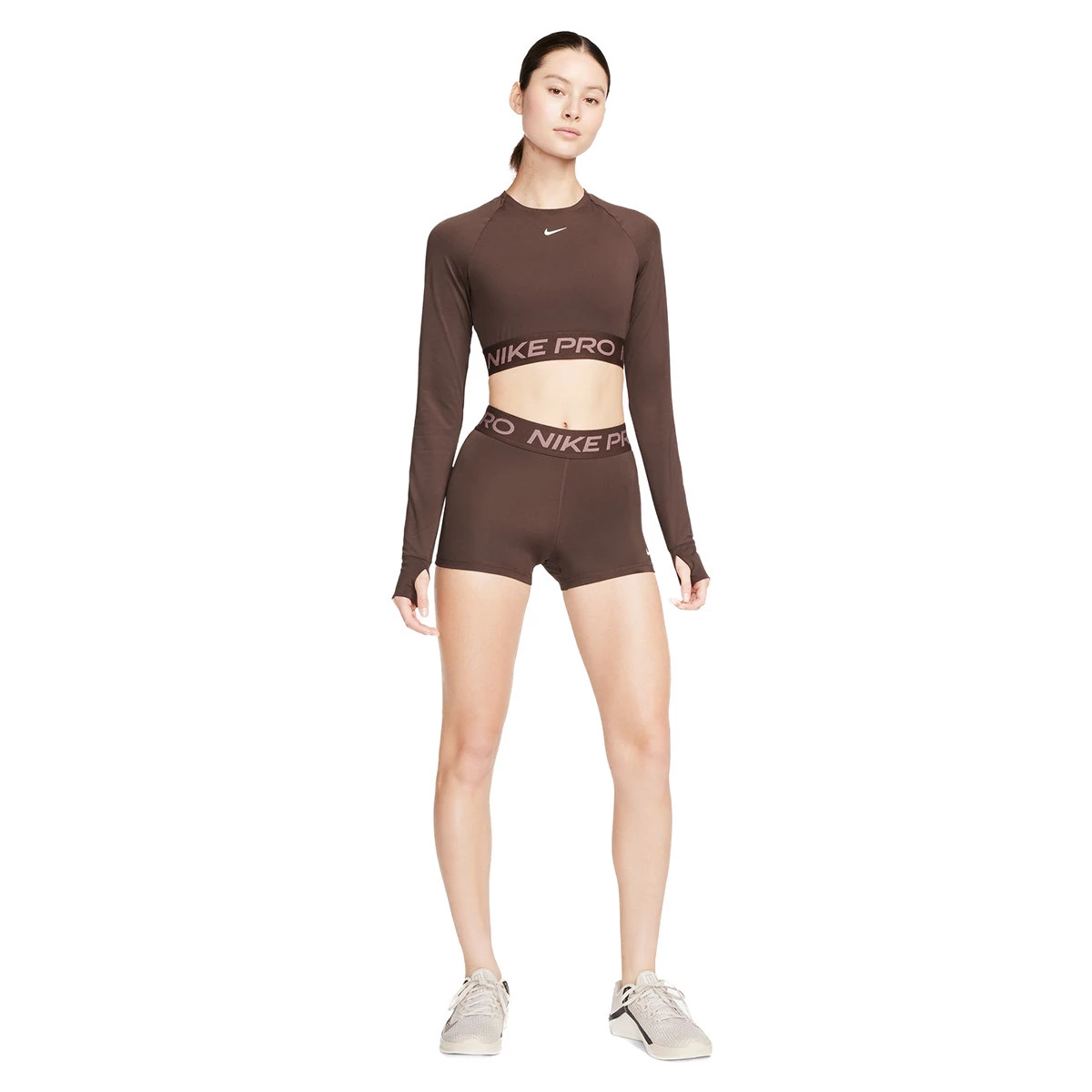 Gli shorts Nike Pro sono realizzati con un tessuto elegante ed elastico che offre sostegno e incorpora la tecnologia di traspirazione del sudore per mantenere la traspirazione e il comfort durante gli allenamenti.