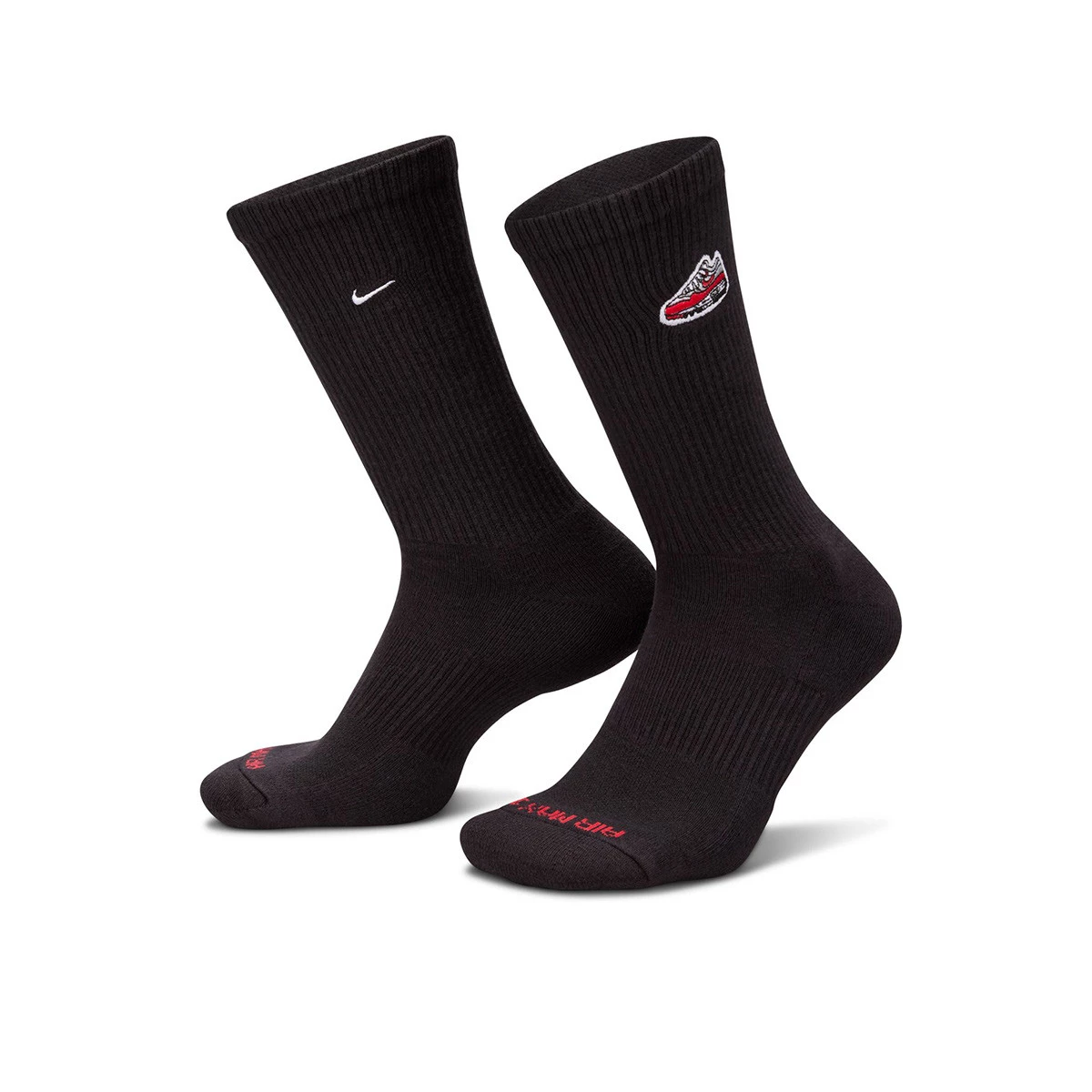 Perché ad essere protagoniste sono sempre e solo le scarpe? Rendi omaggio all'innovazione della cultura Nike Air Max con questi calzini lunghi imbottiti. I dettagli ricamati fanno riferimento alle prime scarpe che mostrarono al mondo il potere di Air. Ma non solo questo, bensì anche la tecnologia anti-sudorazione che mantiene traspirazione e freschezza all'altezza dei piedi e la fascia che avvolge il collo del piede per un maggior sostegno.
