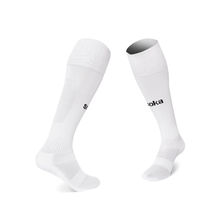 Calzettoni da gara Soul del marchio Soka. Rete elastica sul polpaccio per alleviare la pressione durante la contrazione muscolare. Doppia spugna sulla suola e sul tallone per ridurre lo sfregamento con le calzature.