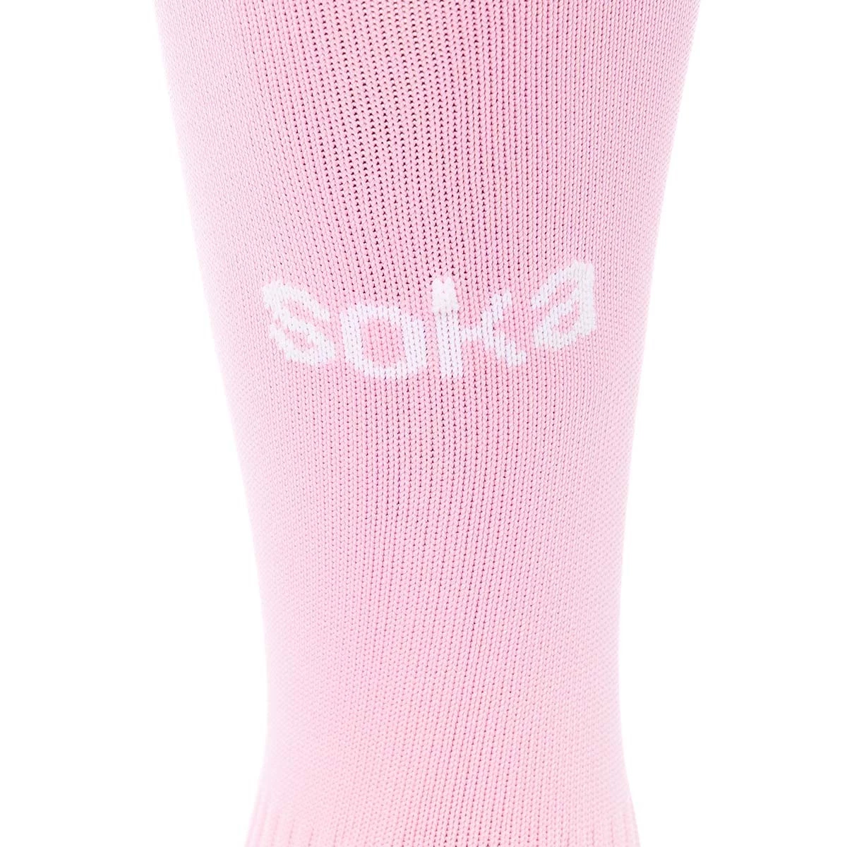 Calzettoni da gara Soul del marchio Soka. Rete elastica sul polpaccio per alleviare la pressione durante la contrazione muscolare. Doppia spugna sulla suola e sul tallone per ridurre lo sfregamento con le calzature.