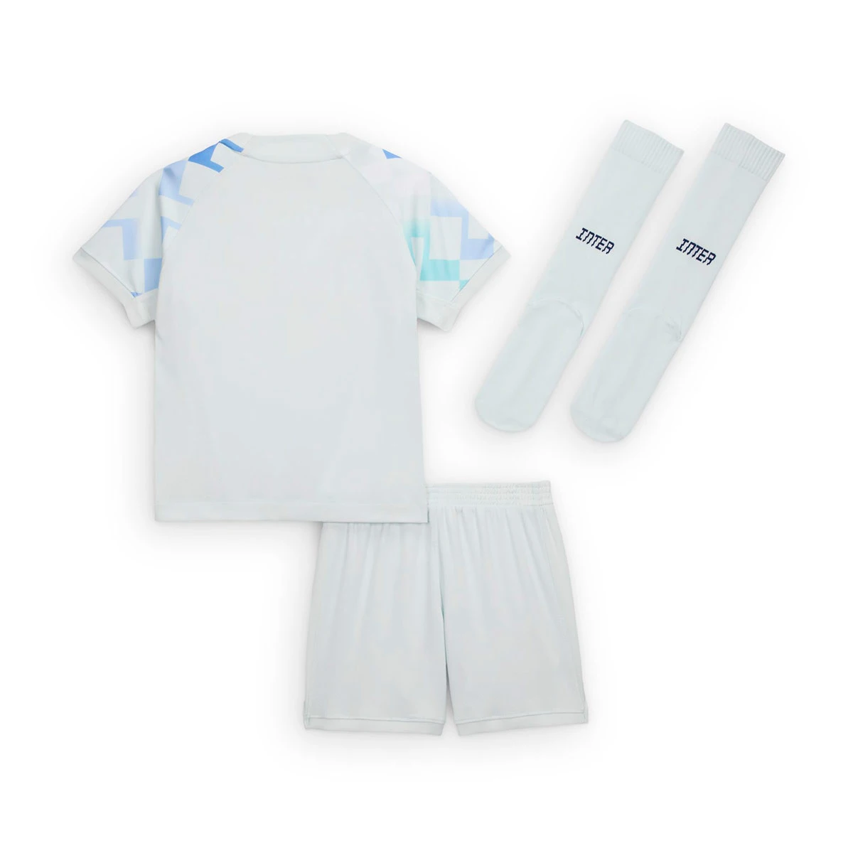 Se in casa c'è un piccolo appassionato di calcio, l'Away Kit dell'Inter 2025-2026 per bambini di età prescolare sarà il regalo perfetto. Questo kit Nike riproduce fedelmente lo stesso modello che le grandi star indossano in campo, permettendo al vostro piccolo di sentirsi parte della squadra ad ogni gol che festeggerà.