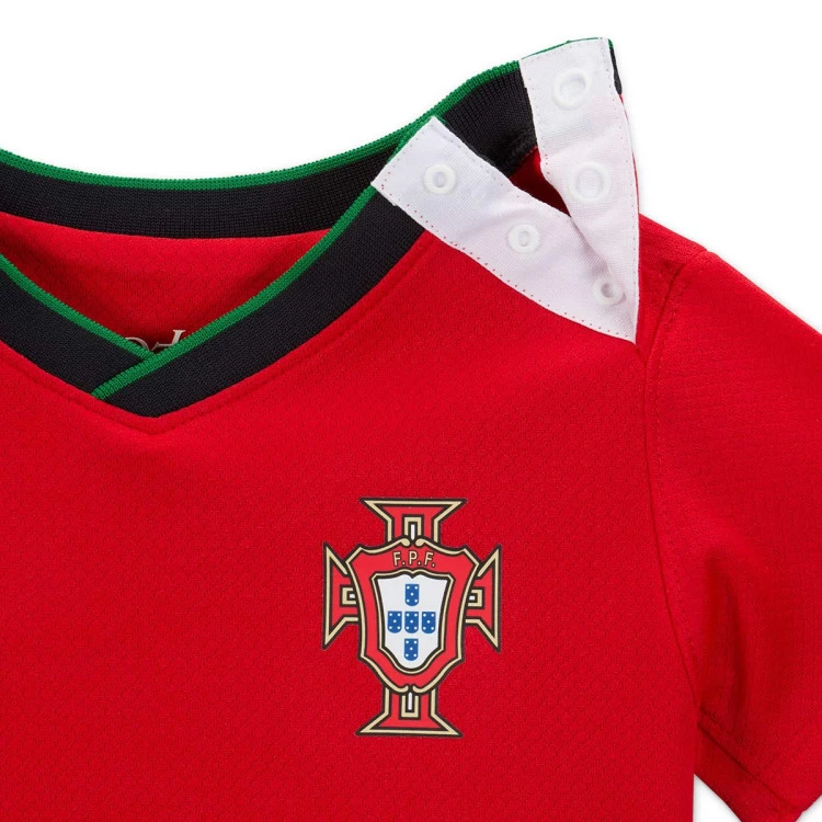 Fai indossare alle piccole star del calcio delle divise complete grazie a questo completo da 3 indumenti. Si ispira all'Home kit della nazionale portoghese per l'Euro 2024 ed è proprio come quello usato dai professionisti durante le partite. Il completo include una maglia della squadra, dei pantaloncini e dei calzettoni in coordinato.