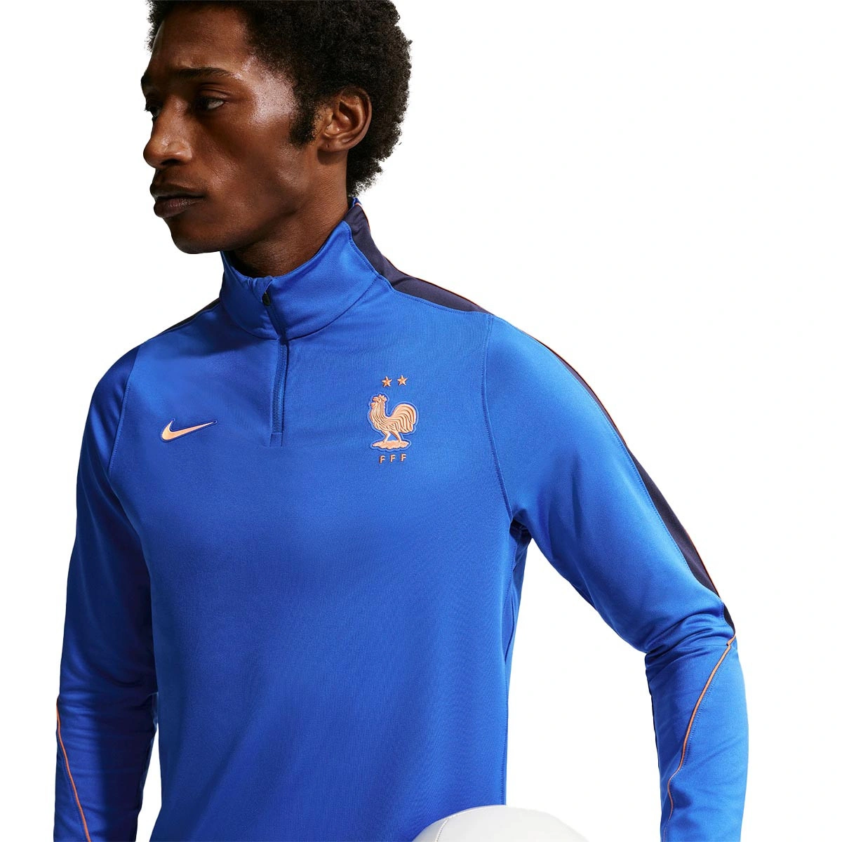 La felpa da allenamento della Francia per i Mondiali 2026 realizzata da Nike è progettata pensando alla massima versatilità per qualsiasi tipo di allenamento.