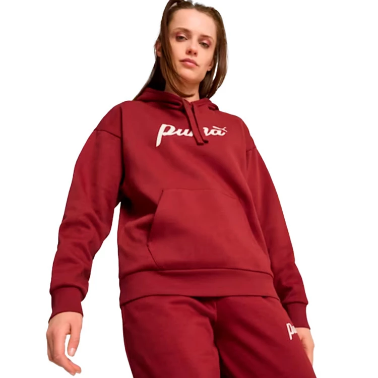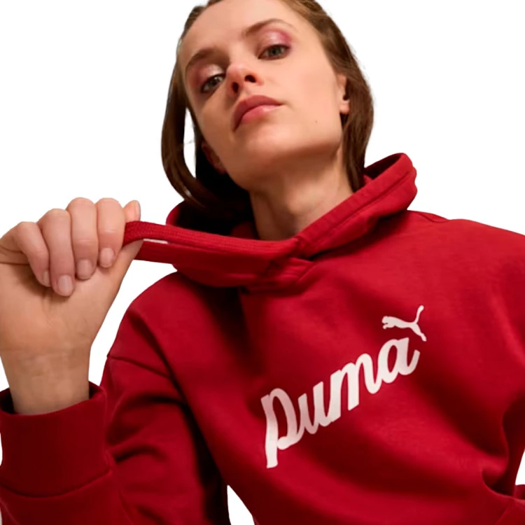 Felpa femminile Puma Essentials + Script. Rilassati e fatti notare con un look casual. Questa felpa ampia con cappuccio è stata creata per potersi rilassare con stile. Con il suo cappuccio foderato in jersey e un'accattivante stampa in gomma, richiama l'attenzione senza smettere di sentirti comoda.- Fit comoda