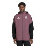 Parte della collezione di allenamento adidas indossata dai giocatori del Real Madrid per prepararsi alle partite di campionato, questa giacca ti offre la copertura di cui hai bisogno per perfezionare le tue abilità con il pallone. Presenta un tessuto esterno leggero che respinge l'acqua e ti protegge dalla pioggia leggera e un cappuccio pieghevole che ti permette di personalizzare il livello di copertura. Lo stemma del club stampato sul petto rappresenta il tuo impegno per il calcio.