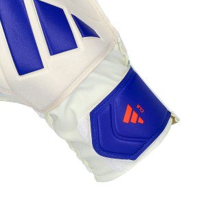 Guanti adidas per adulti Copa Club, disponibili nella colorazione White-Lucid blue-Solar red, montati su un taglio flat.