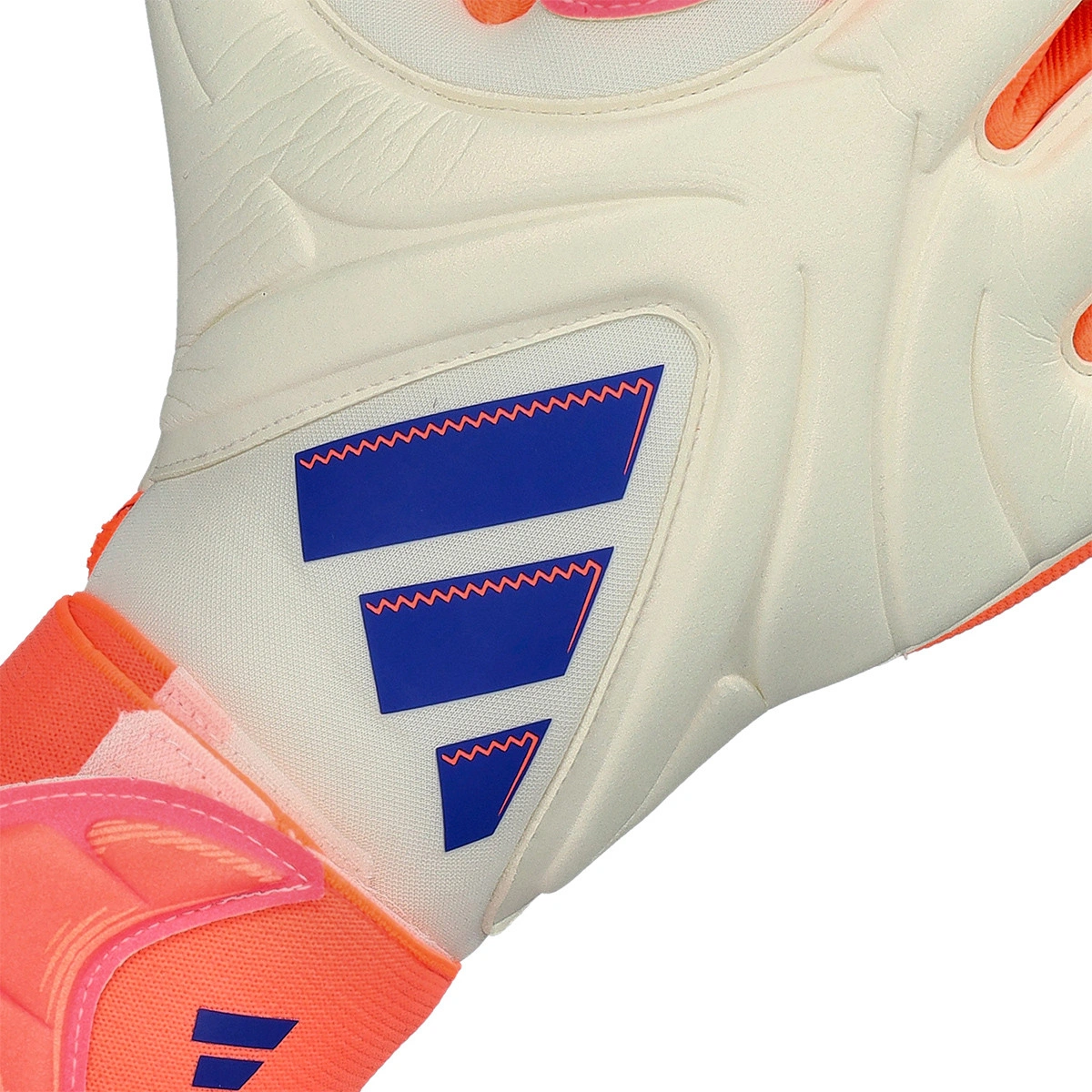 Guanti da portiere Copa Pro della marca adidas e disponibili nella colorazione Off white-Lucid blue-Signal coral, Modello per adulti con taglio negativo.