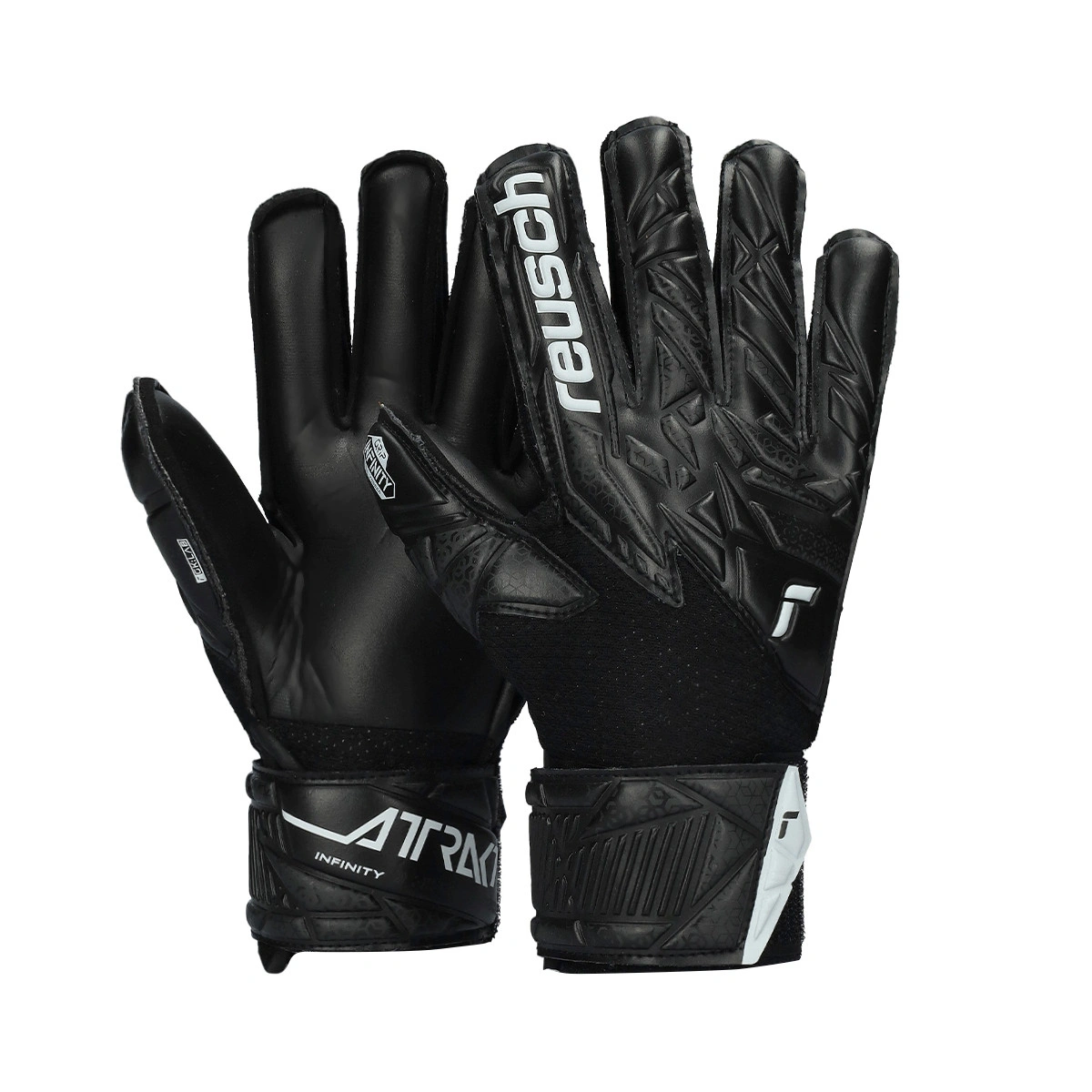 Guanti da portiere Attrakt Infinity della marca Reusch. Modello per bambini di colore nero.