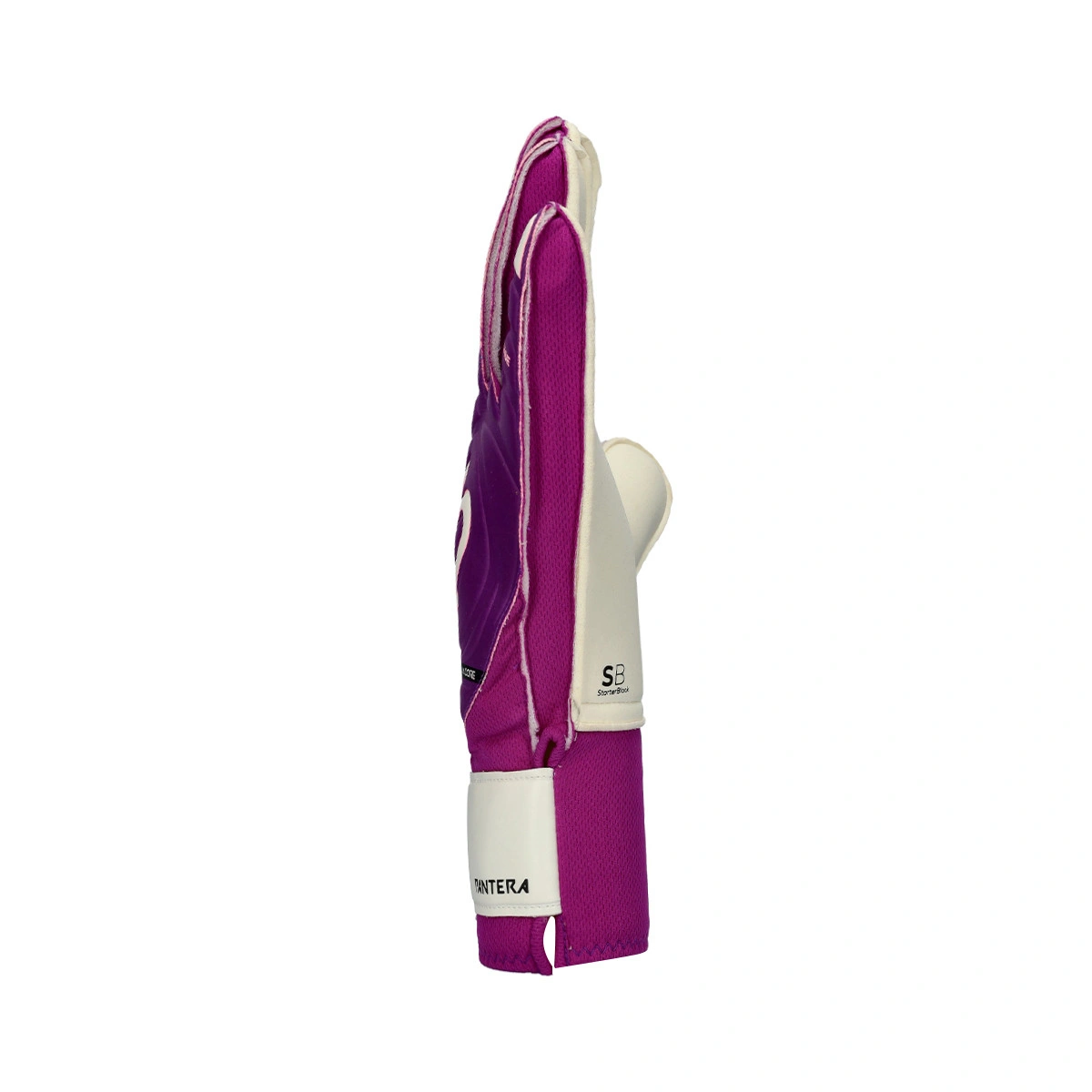 Guanti da portiere Pantera Base della marca SP e di colore magenta-grigio. Guanti per adulti e in taglio flat.
