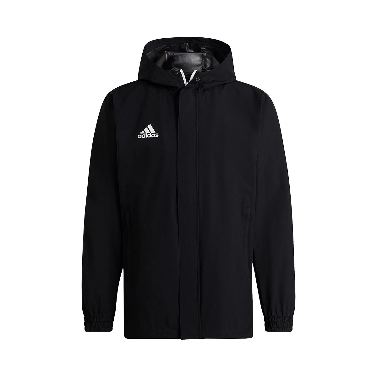 Impermeabile della linea Entrada 22 che presenta una chiusura a zip e un cappuccio che ti proteggono dalle intemperie mentre ti riscaldi sulla fascia.