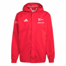 Giacca antipioggia della linea Entrada 22 con chiusura a zip e cappuccio per proteggersi dalle intemperie mentre ci si riscalda a bordo campo.