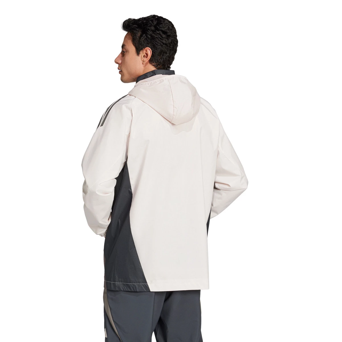 La vittoria arriverà col sole o con la pioggia. Questo k-way da calcio adidas del Real Madrid permette di affrontare il maltempo prima delle partite più decisive. Il tessuto tecnico impermeabile e il cappuccio pieghevole isolano in modo efficace dalle intemperie. Lo stemma serigrafato rende omaggio alla squadra dominante del calcio europeo.