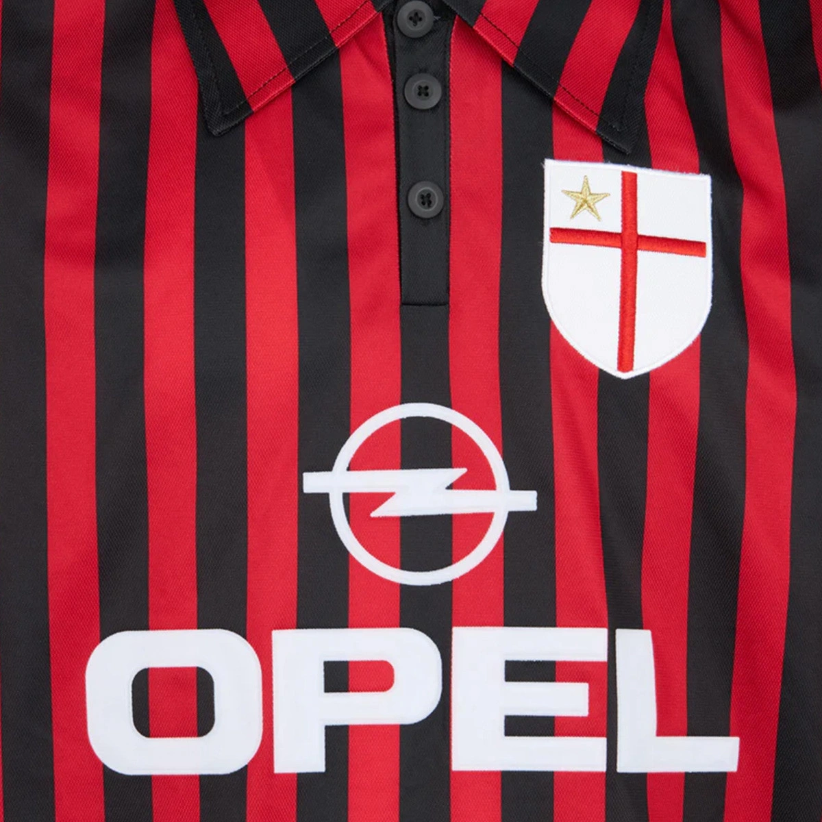 Replica dell'iconica maglietta con lo storico stemma bianco e la vistosa croce rossa, che rappresenta la croce di San Giorgio, simbolo della città di Milano. Questo emblema evoca successo e grandezza, trasmettendo l'essenza della vittoria.