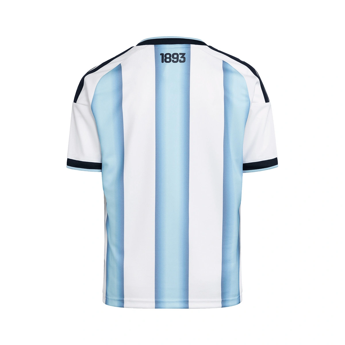 La maglia adidas della prima divisa dell'Argentina per il Mondiale 2026 è un omaggio al passato del calcio e ai trionfi del futuro. Realizzata per i giovani tifosi, coglie tutto l'orgoglio di una nazione e l'impatto indelebile dei giocatori storici.