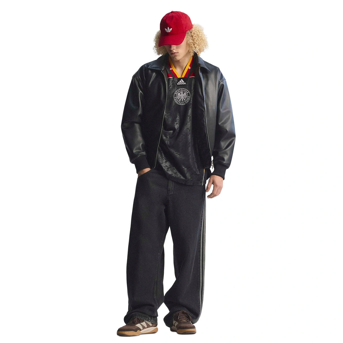 La maglietta Bringback Remixed Germania combina il classico e il contemporaneo. Ispirata alle iconiche magliette dei paesi sponsorizzati, questo capo rappresenta un design innovativo radicato nel nostro ampio archivio storico. Il taglio ampio e lo scollo a V creano una silhouette rilassata ma elegante, ideale per gli appassionati dello stile urbano. La realizzazione in tessuto a maglia risulta comoda e resistente, rendendola un acquisto fenomenale per il guardaroba. Rendi omaggio allo spirito di adidas Originals con questa maglietta e indossala per distinguerti con naturalezza.