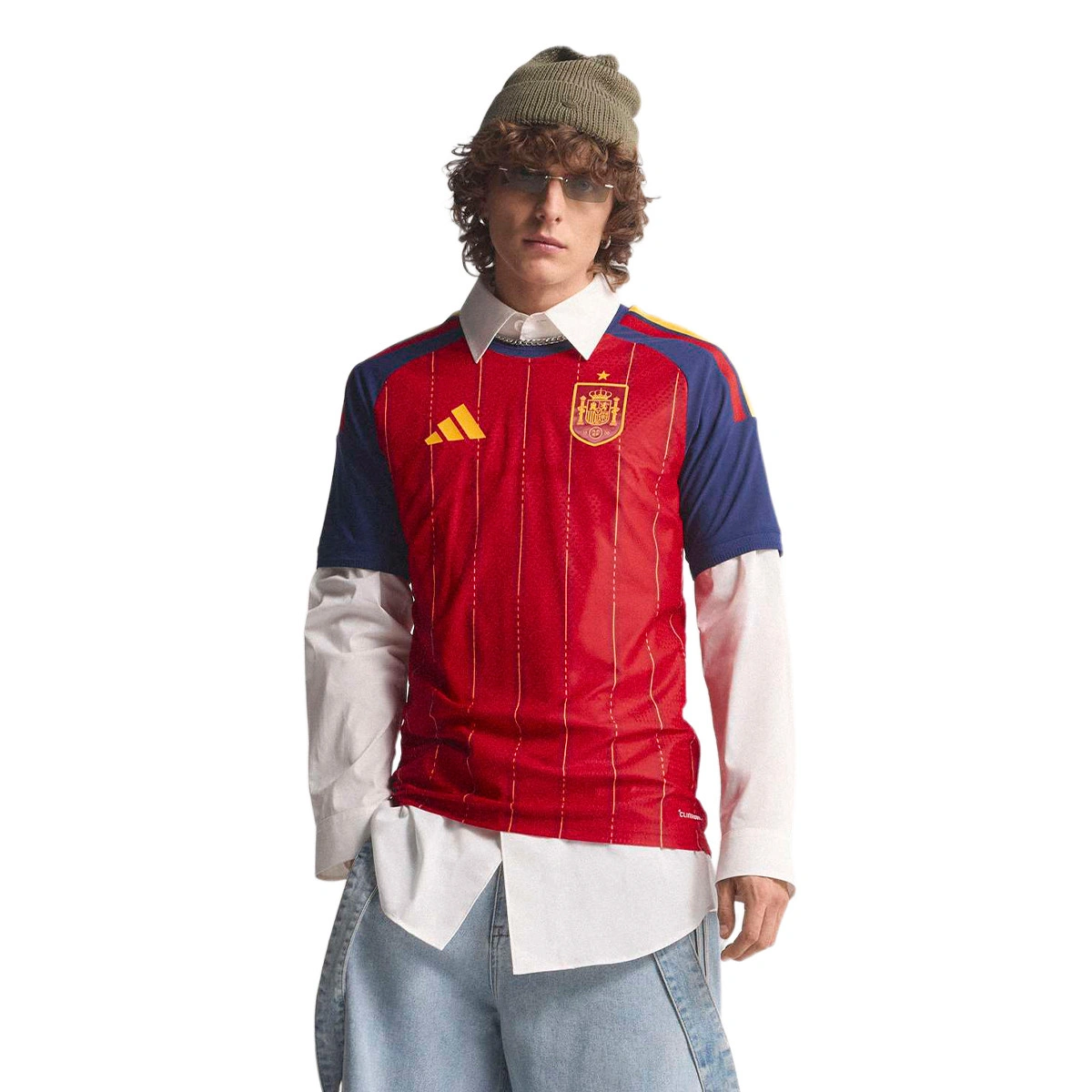 La maglia della prima divisa della nazionale spagnola nella sua versione authentic per il Mondiale 2026 è un omaggio all'eleganza e alla passione del calcio spagnolo. Ispirata ai colori vivaci della bandiera spagnola, questa maglia è progettata per attirare l'attenzione sia dentro che fuori dal campo.