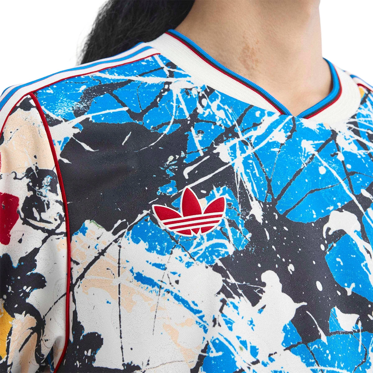 La musica, la moda e il calcio si uniscono nella maglia edizione speciale del Manchester United - Stone Roses della marca adidas. Un omaggio alla leggendaria scena musicale di Manchester, questo capo rende omaggio a una delle band più influenti della città e al suo duraturo legame con i tifosi del Manchester United.