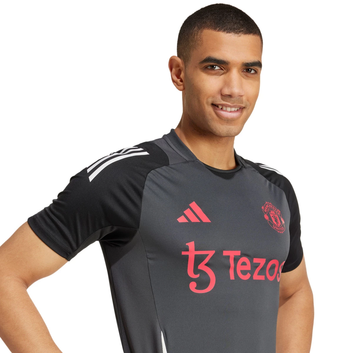 maglia Training del Manchester United 2024-2025 che indossano le star del Manchester United quando si allenano per le partite più importanti. La tecnologia traspirante AEROREADY e i pannelli in mesh si uniscono per massimizzare la ventilazione. Lo stemma del club trasferito a caldo dimostra la tua passione per il miglior calcio.