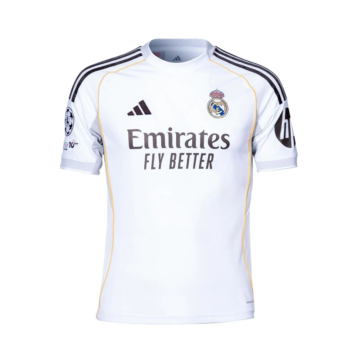 La maglia per bambini serigrafata CARVAJAL del primo kit del Real Madrid per la stagione 2025-2026 è progettata da adidas come un omaggio alla grandezza ed eleganza del club dei Blancos.