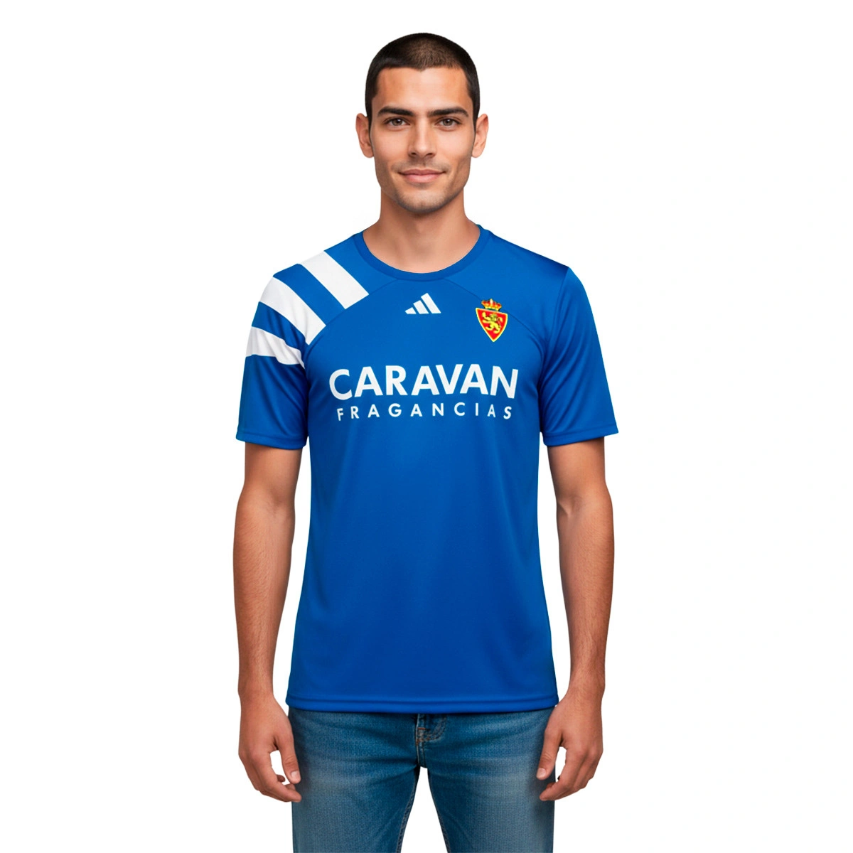 Questa maglia del Real Zaragoza Fortore propone un modello che ci riporta direttamente alla stagione 1992/1993 del Real Zargoza. Presenta delle tonalità clu scure e le tre mitiche strisce bianche sulla spalla destra.
