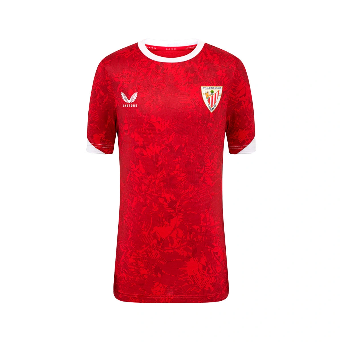 Indossa con orgoglio i colori della squadra anche fuori casa con questa maglia a maniche corte Prepartido 1ª Equipación dell'Athletic Club per adulti. Progettata con una stampa geografica sovrapposta che rappresenta le sette province storiche della regione. La struttura con maniche montate favorisce la mobilità senza perdere stile, mentre il collo rotondo e il fondo posteriore più lungo completano un capo pensato per durare stagione dopo stagione.