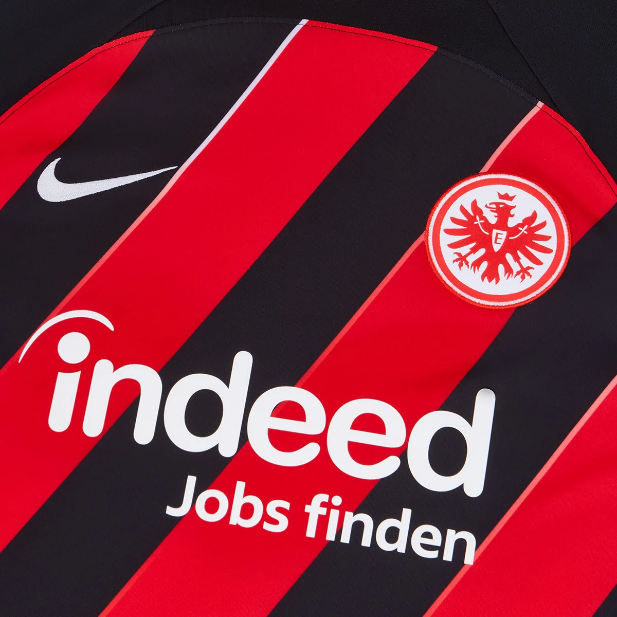 Questa maglia da adulto dell'Eintracht Frankfurt 2023-2024 combina strisce e tessuto traspirante per offrirti un look pronto per la partita ispirato alla tua squadra del cuore. Questo prodotto è realizzato al 100% con fibre di poliestere riciclato. La tecnologia Nike Dri-FIT allontana il sudore dalla pelle per una più rapida evaporazione, aiutandoti a rimanere asciutto e comodo.