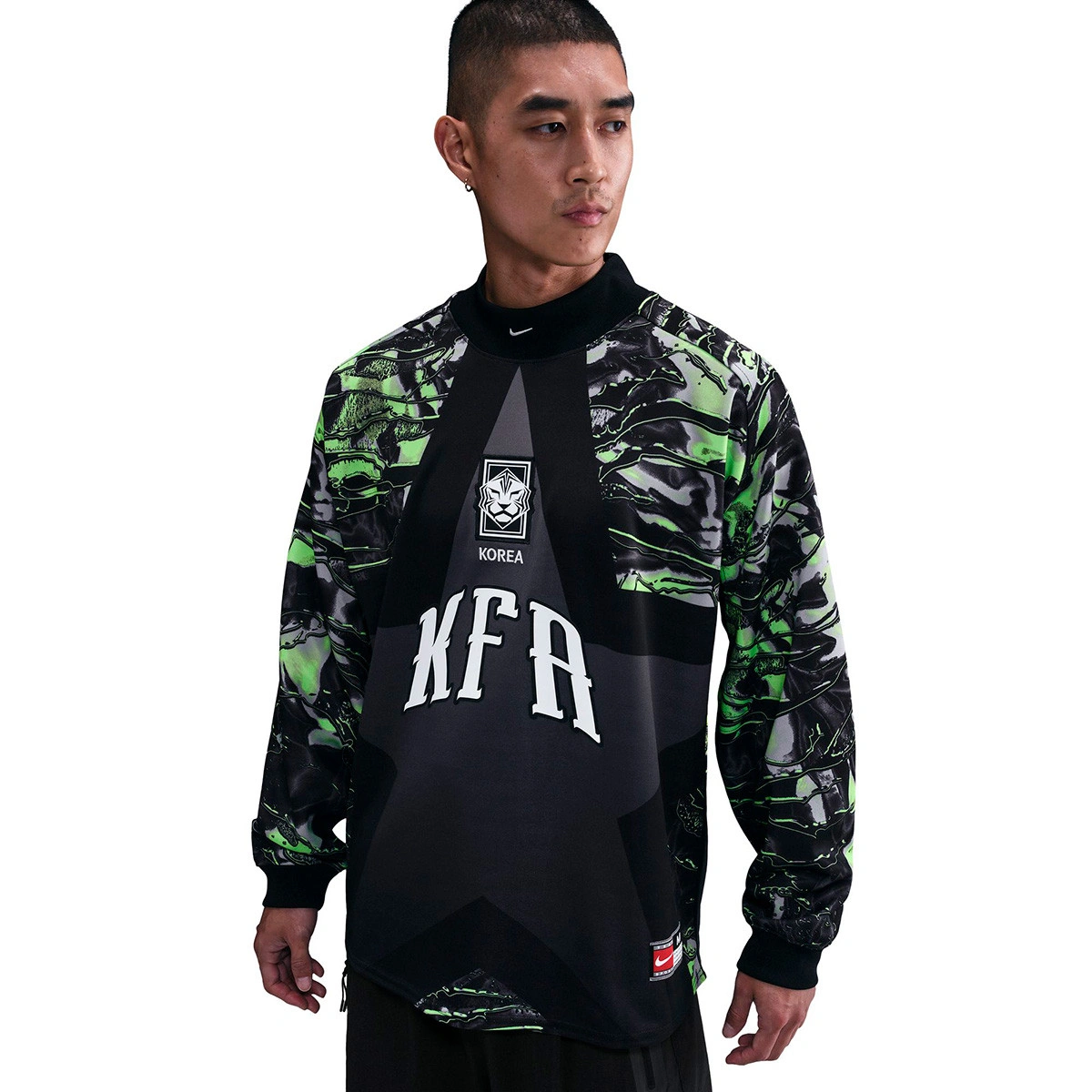 maglia Goalkeeper Korea Black-White della marca Nike, progettata appositamente per i guerrieri della porta. Questa maglia, pensata per chi vive tutta l'emozione del calcio, è un mix di stile e funzionalità in un modello audace ispirato alla nazionale della Corea del Sud.