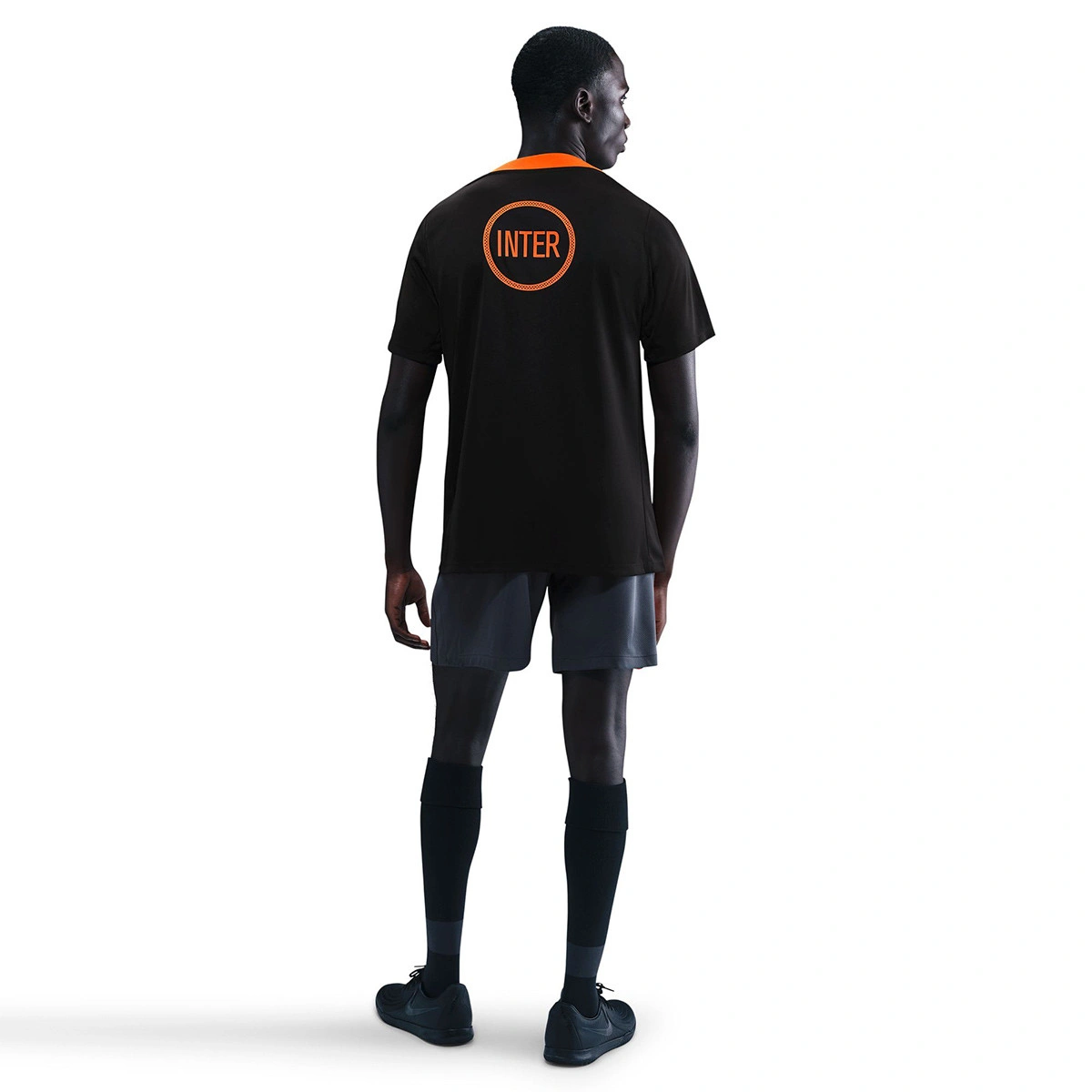 La maglia dell'Inter Pre-Match 2025-2026 della marca Nike presenta una vestibilità aderente abbinata a una tecnologia che assorbe l'umidità per garantire traspirazione durante il riscaldamento.