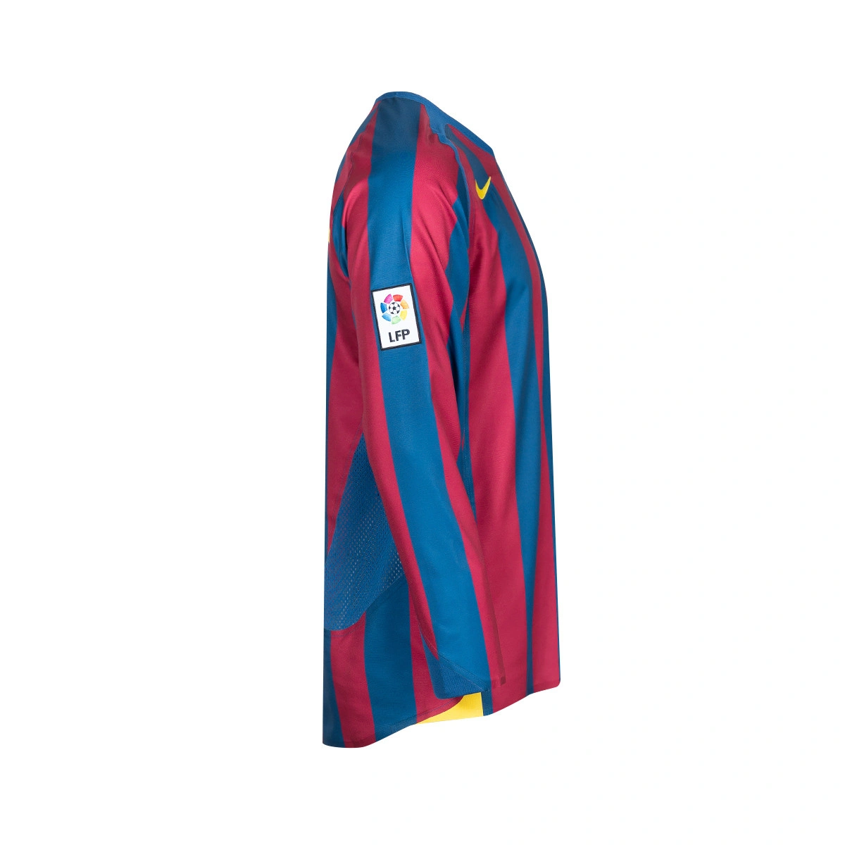 Un capo leggendario che rende omaggio al gioco che ha fatto innamorare il mondo. Questo modello a manica lunga mantiene tutti i dettagli che l'hanno reso indimenticabile: i classici colori blaugrana, l'antica patch della Liga e, come elemento immancabile, la serigrafia ufficiale “Ronaldinho” e il suo mitico numero 10 sul retro.