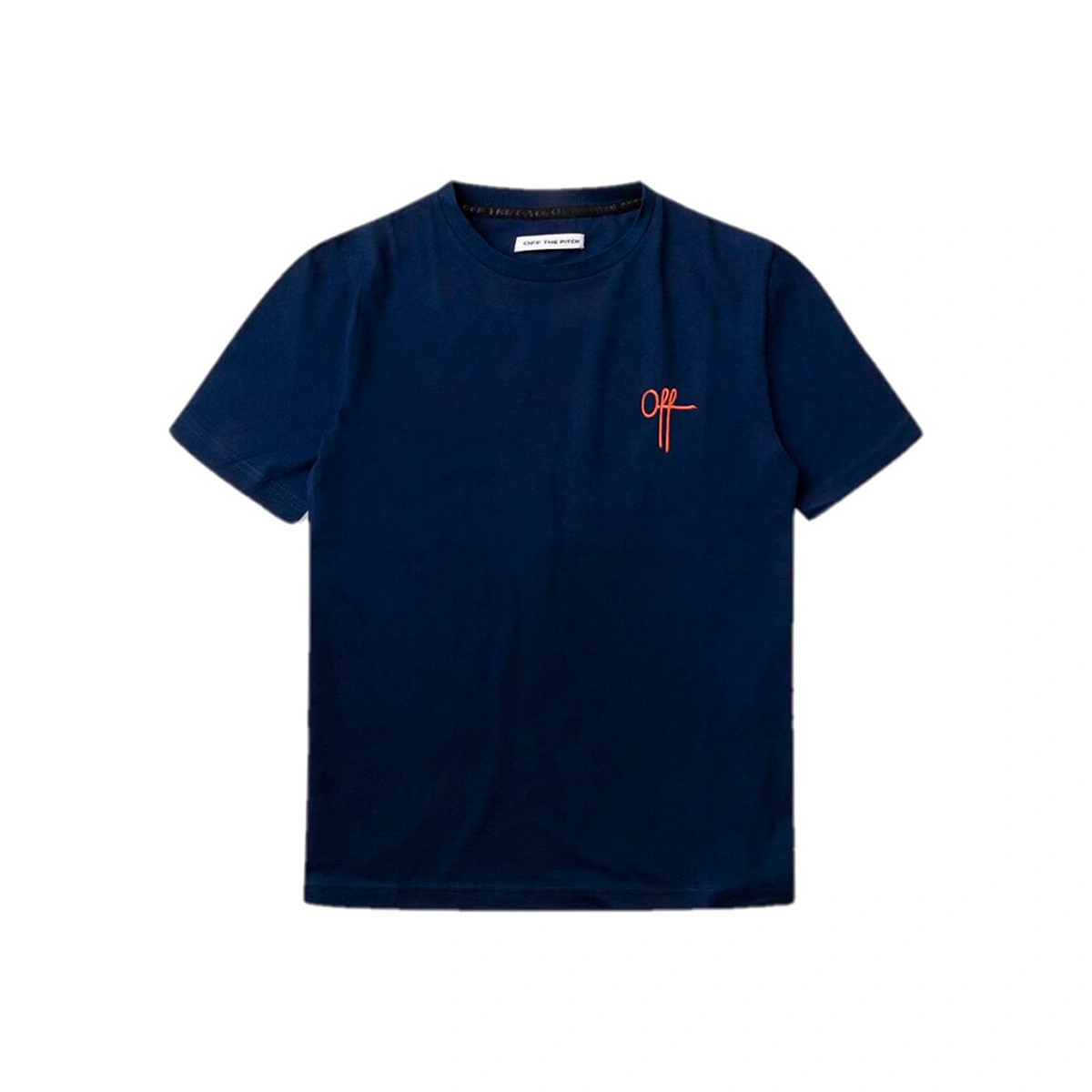 T-shirt a maniche corte Off The Pitch. T-shirt blu marino dalla vestibilità standard, a girocollo, con il logo del marchio di piccole dimensioni sul davanti e una grande stampa dello stesso sul retro della maglietta.