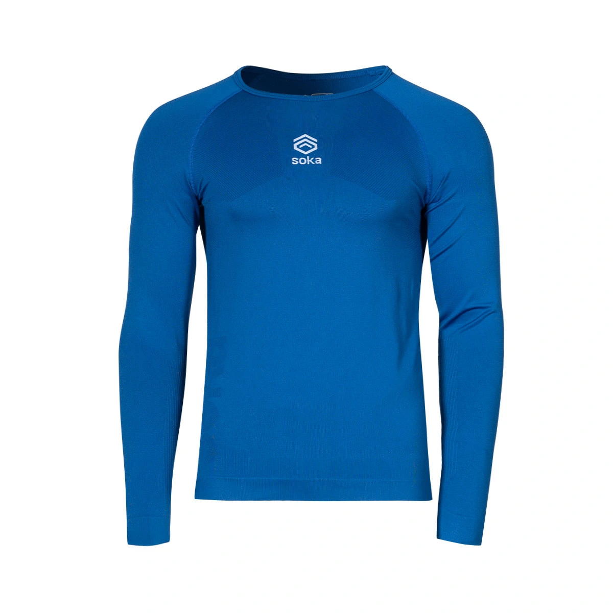 maglia termica a manica lunga Sea Blue della marca Soka! Progettato per adulti, questo capo aderente si adatta al tuo corpo come una seconda pelle per una compressione ottimale che migliora la circolazione sanguigna e le prestazioni muscolari. Inoltre, la sua vestibilità anatomica garantisce che rimanga al suo posto indipendentemente da quanto ci si muova.