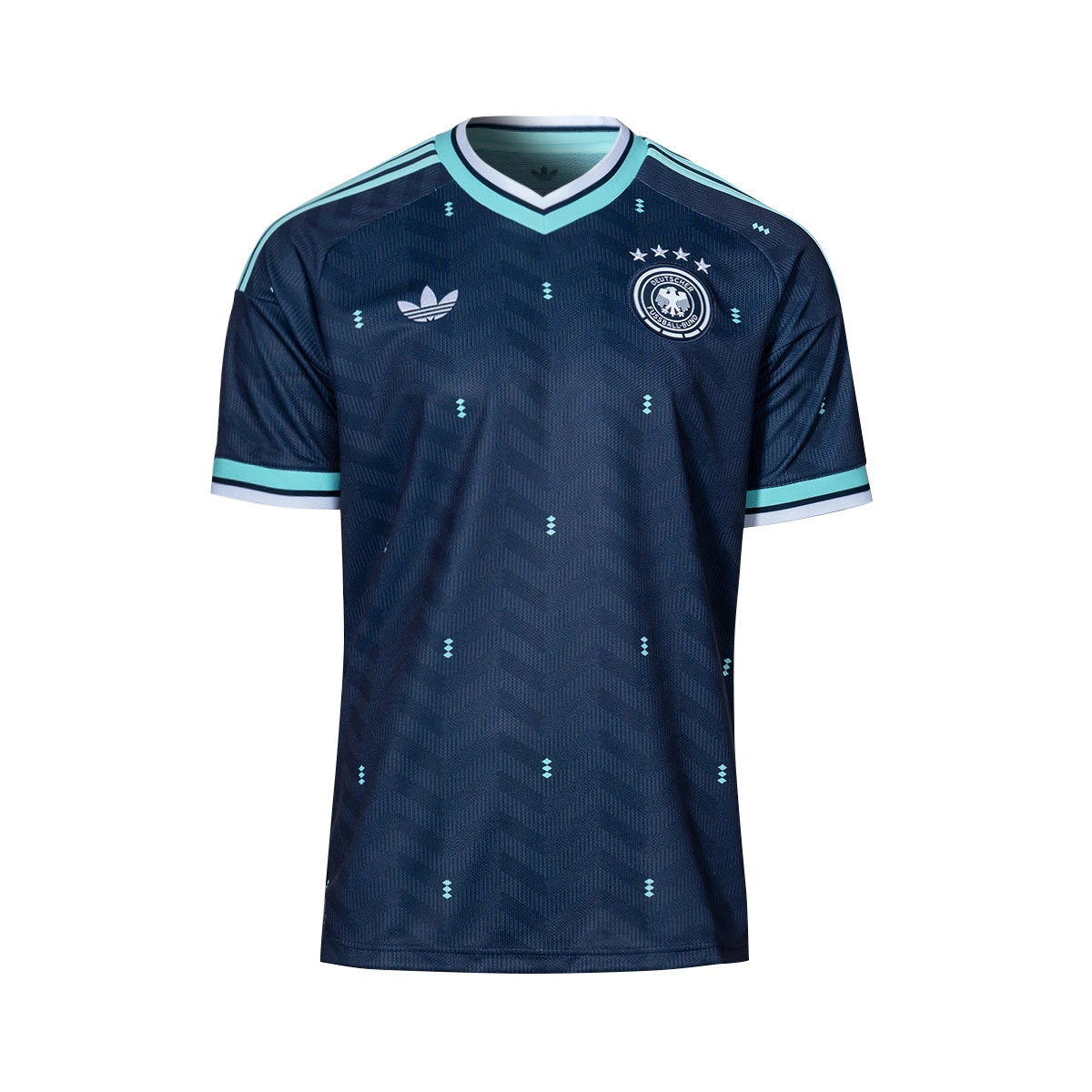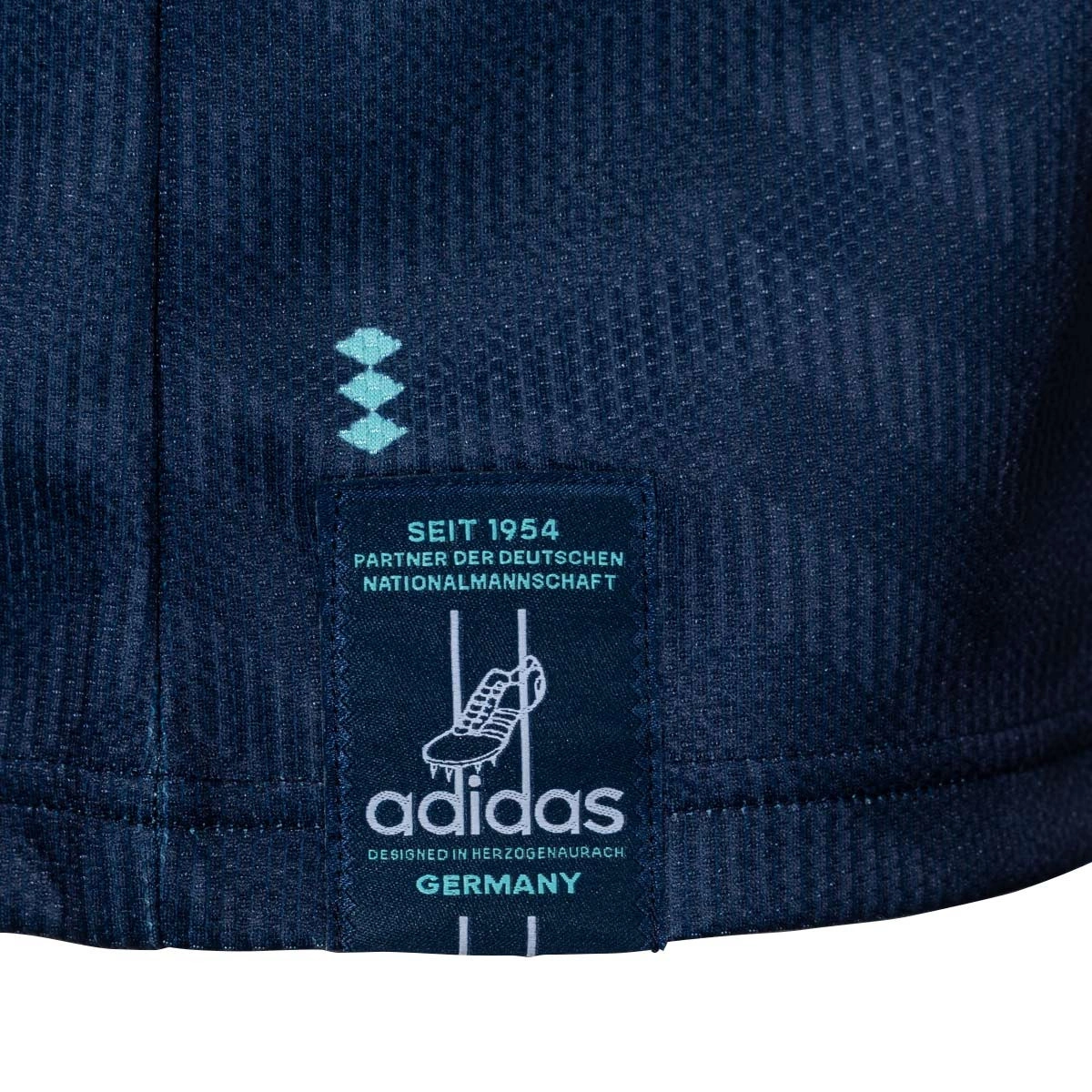 È dotata della tecnologia Climacool, che assorbe e disperde il sudore per una performance fresca, asciutta e senza distrazioni, ed è realizzata in tessuto double-knit ad asciugatura rapida. Con lo stemma della federazione calcistica tedesca e un’etichetta con la bandiera, il design è completato dall’iconico logo adidas.