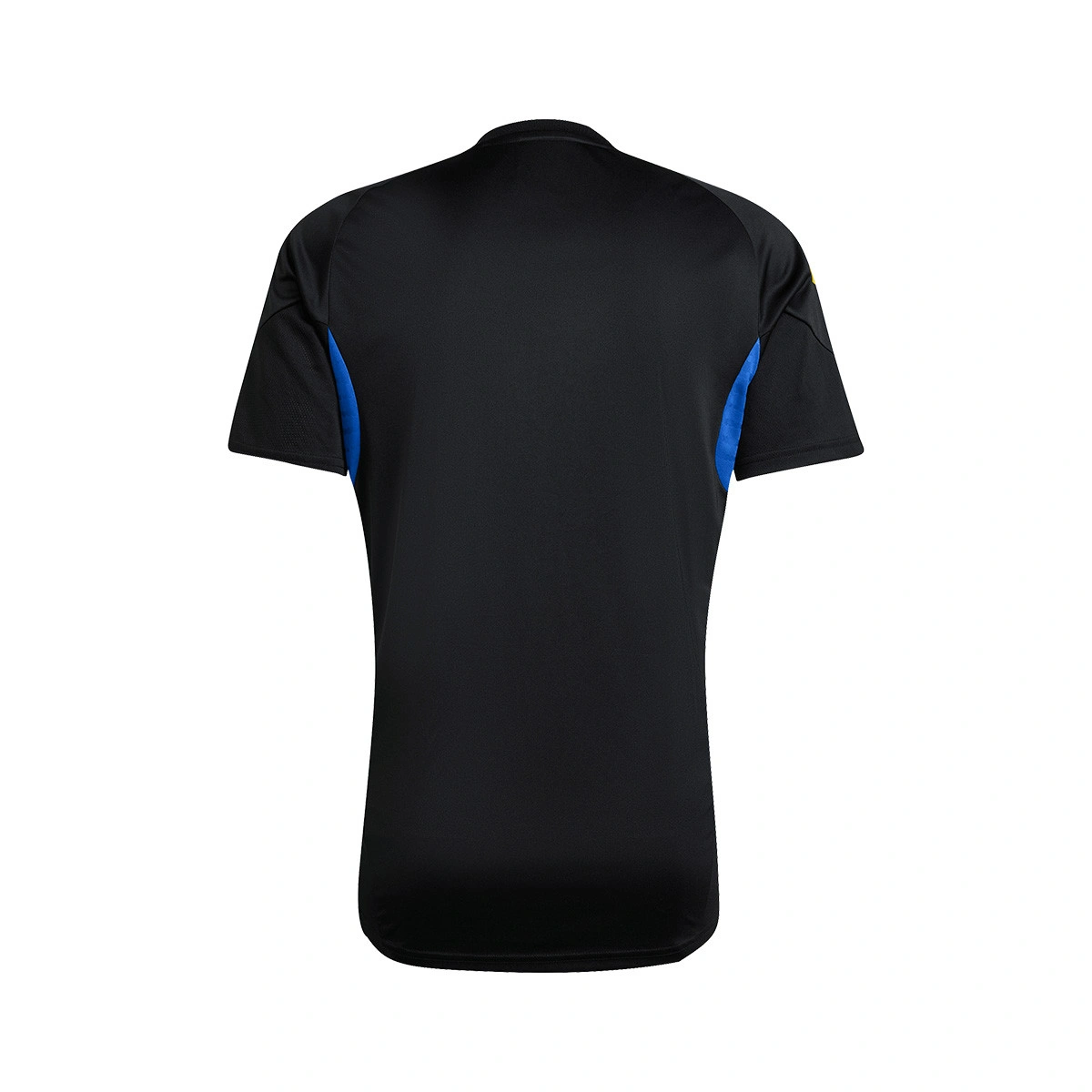 Questa maglia da calcio adidas, che sfoggia il nero e il giallo della terza divisa del Manchester United, fa parte dell'abbigliamento da allenamento che i giocatori del club indossano prima delle partite importanti. È realizzata in morbido tessuto interlock con un taglio aderente e tecnologia traspirante AEROREADY che mantiene la pelle asciutta per giocare con il massimo comfort. Lo stemma del club all'altezza del petto è termotrasferito per mantenere la sensazione di leggerezza.