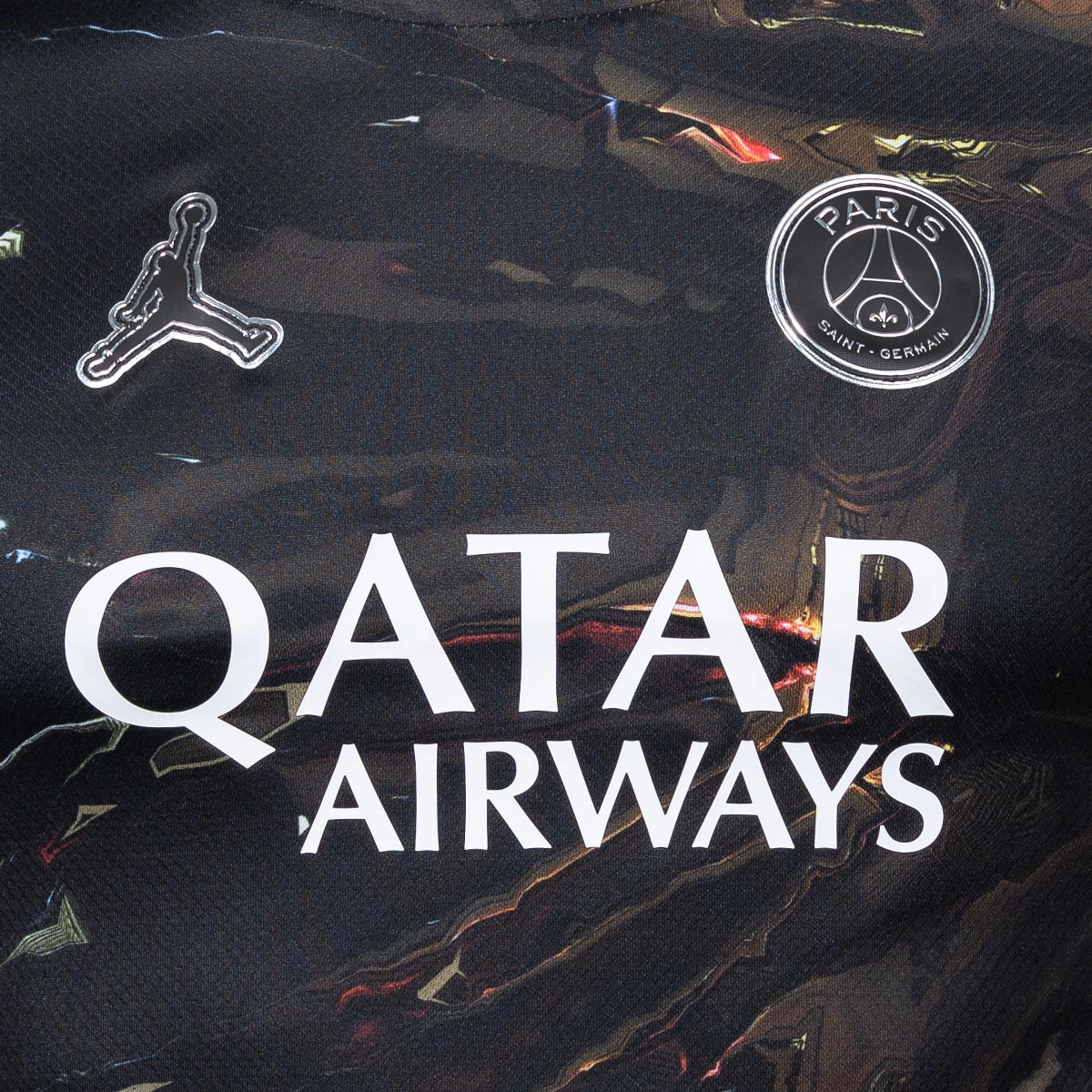 Progettato da Nike, questo kit che rappresenta il colore nero con i bagliori delle luci parigine dona un look elegante e moderno che farà parlare di sé in qualsiasi tribuna.