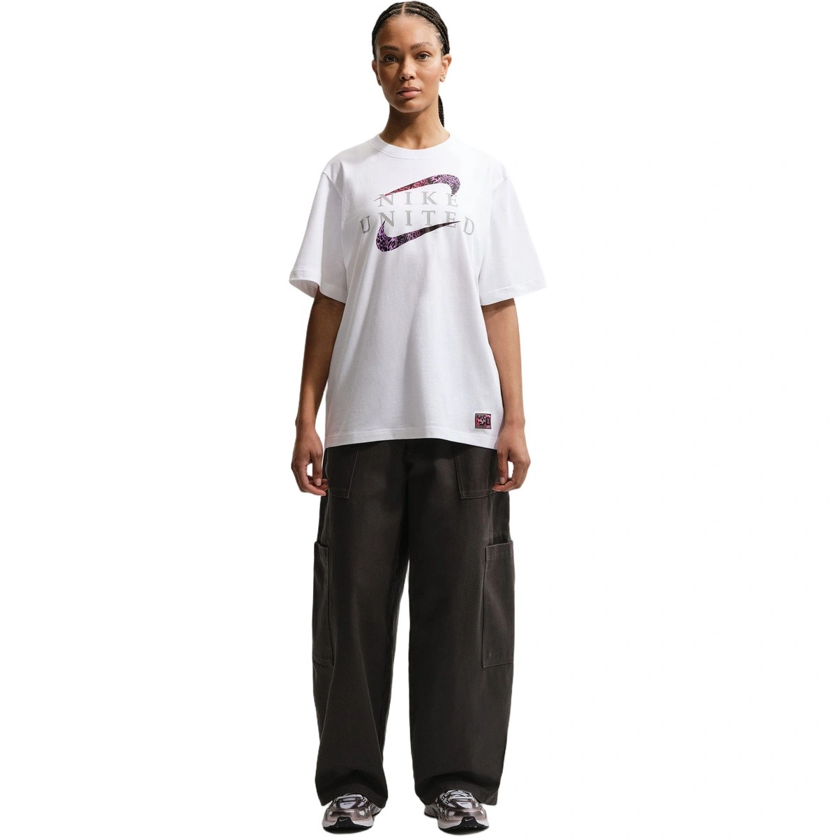 • La collezione Nike United rende omaggio alle atlete Lauren James, Salma Paralluelo, Deyna Castellanos, Sophia Wilson, Patricia Guijarro e Naomi Girma. Abbiamo utilizzato dettagli colorati per rappresentare il modo in cui canalizzano la loro ambizione e la trasformano in splendore totale.