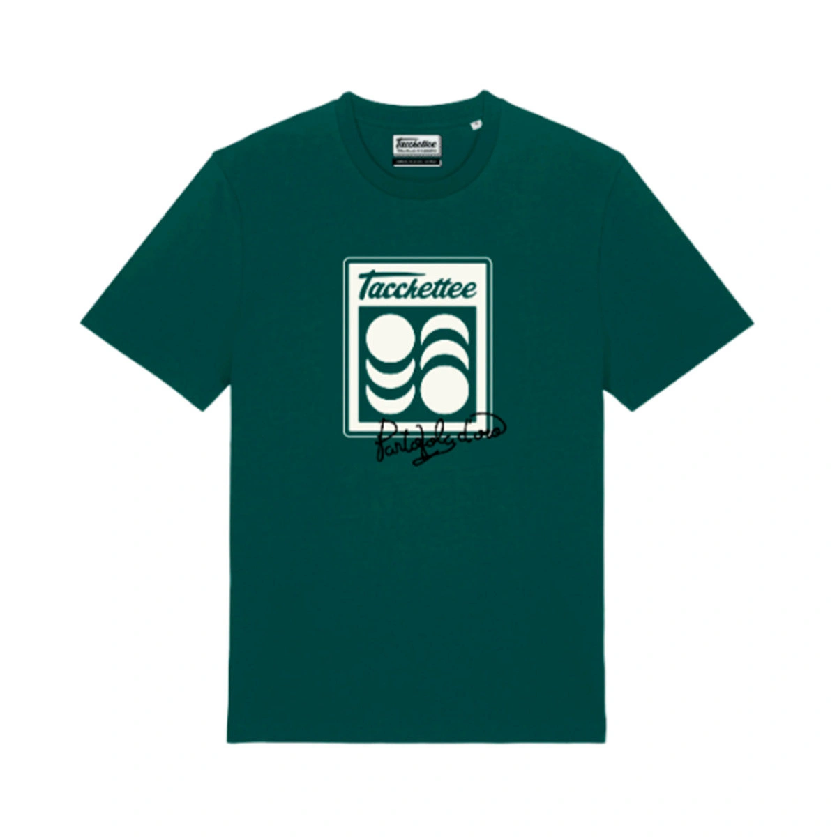 La maglietta Tacchettee x Pantofola d'Oro è progettata per coloro che desiderano portare lo spirito della campagna nella loro vita quotidiana. Il logo "Bouncing Ball" all'altezza del petto, insieme al marchio Tacchettee, diventa il dettaglio distintivo che trasmette passione, movimento e stile. È progettata per accompagnarti ovunque con comfort e libertà di movimento. I doppi orli, il colletto a costine e le maniche a giro offrono funzionalità con attenzione ai dettagli, trasformando una semplice maglietta in un capo resistente e versatile.