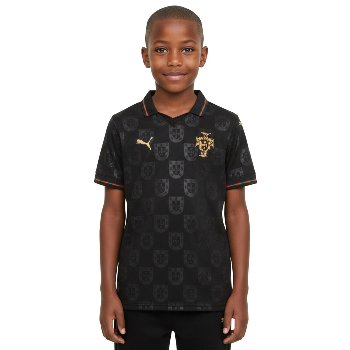 Preparati a sfoggiare orgogliosamente i colori della nazionale portoghese con la maglia Special Edition Eusébio 2025-2026 per bambini della marca Puma, una vera chicca per ogni appassionato di calcio. Questo capo autentico riproduce il modello ufficiale con dettagli unici della stagione 2025/26 che ti faranno sentire come se fossi in campo.