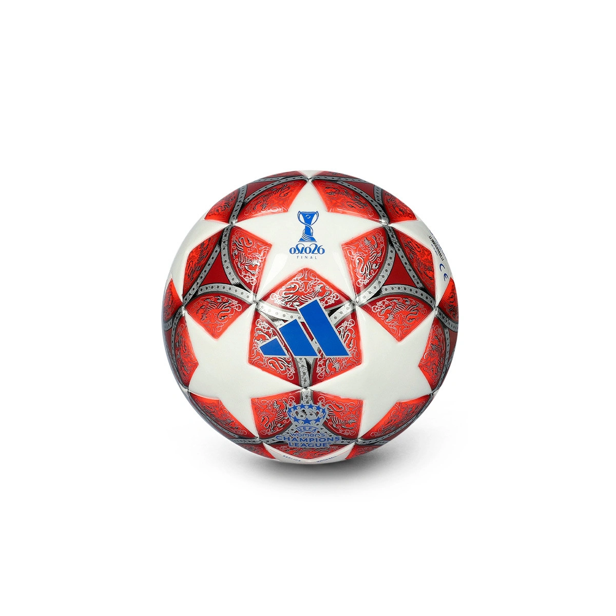 Gioca con sicurezza come le grandi star. adidas lancia il pallone della finale della UEFA Women Champions League 2026 con il rosso, il blu e il bianco come colori principali, con grafiche che rappresentano la città ospitante. Vivi al massimo la finale della competizione che si giocherà all'Ullevaal Stadion di Oslo!