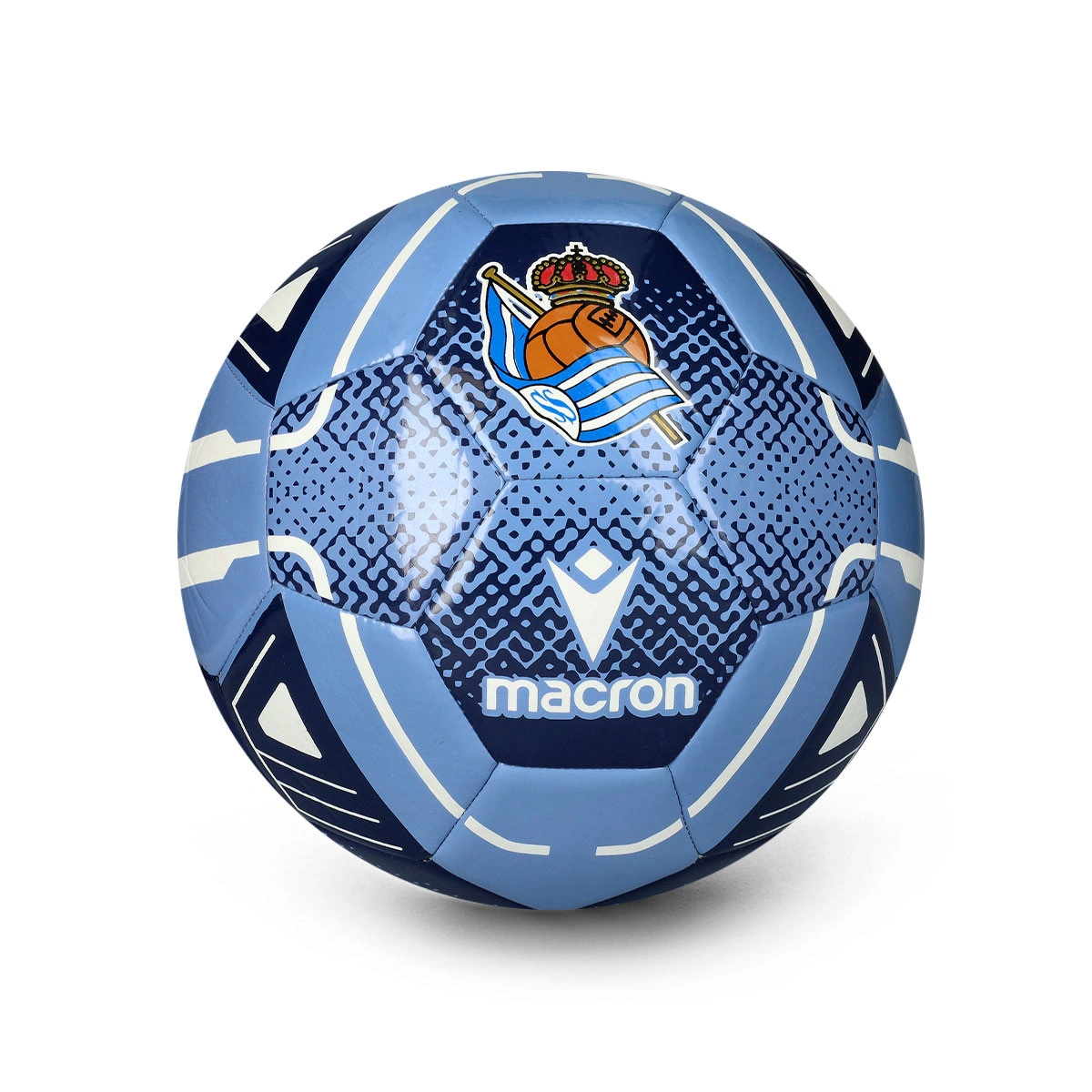 Questo pallone, creato dal prestigioso marchio Macron, è progettato per i tifosi e i giocatori della Real Sociedad, per la stagione 2025-2026.