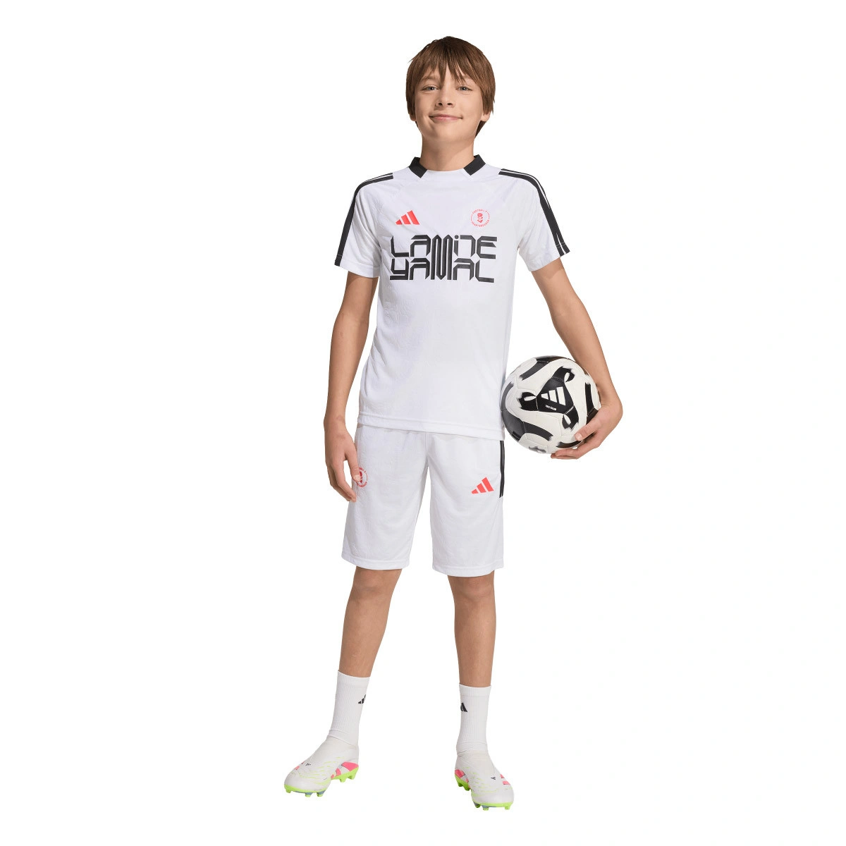 Scopri i pantaloncini Lamine Yamal della marca adidas per bambini e di colore bianco! Questo modello unisce il meglio del mondo sportivo con uno stile moderno e alla moda. Perfetti sia per dare il massimo durante le sessioni sportive che per le passeggiate più casual in città.