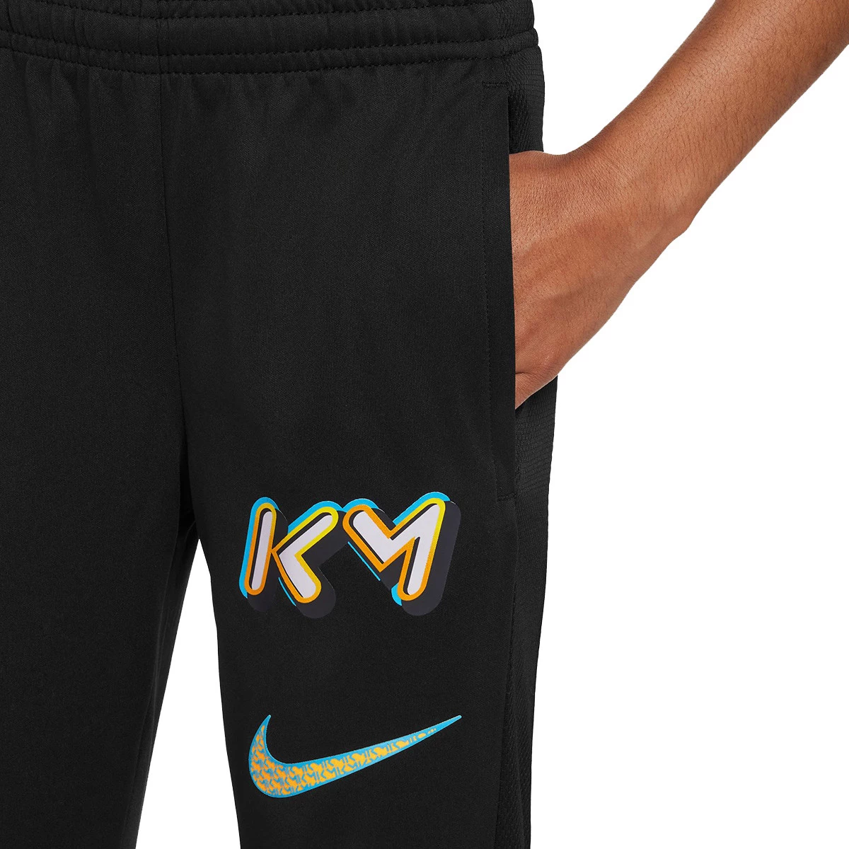 Mostra il tuo sostegno al tuo idolo con questi pantaloni lunghi Kylian Mbappé per bambino in nero e grafica sulla gamba destra.