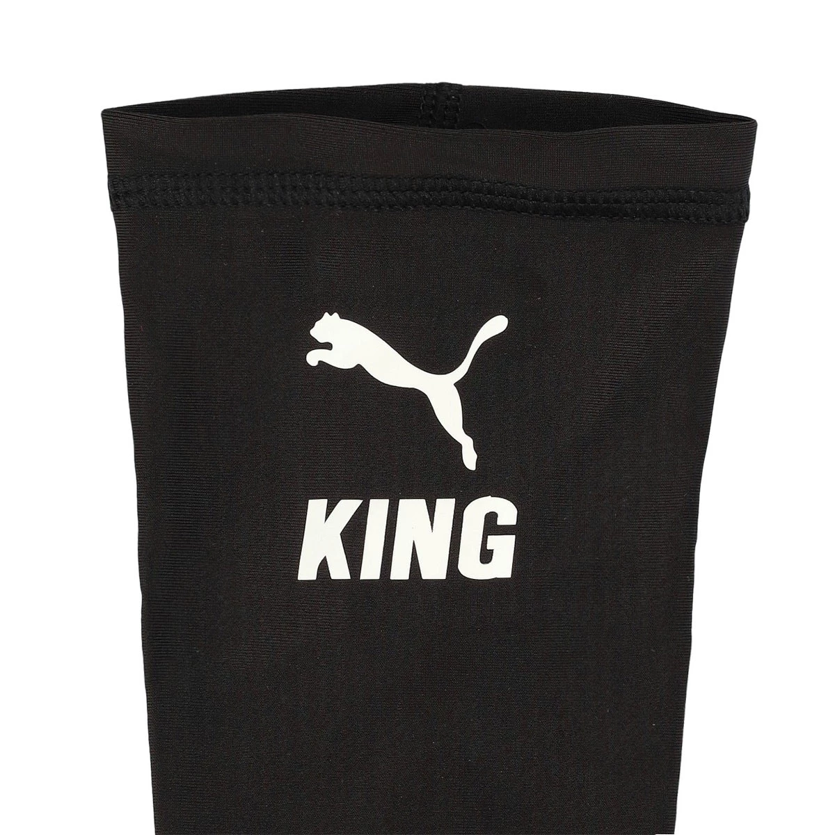 Parastinchi di colore nero della marca Puma, i King Sleeve, ideali per proteggere le gambe da colpi e calci. I King Sleeve, con dei manicotti per una vestibilità migliorata, sono altamente resistenti e assorbono i possibili urti. In più sono ideali per non infortunarsi durante gli allenamenti e le partite.