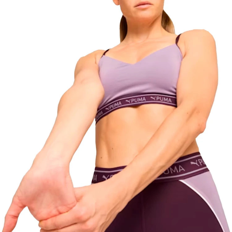 - DETTAGLI ESCLUSIVI; bordatura PUMA STRONG, sostegno di basso impatto e dettaglio delle strisce sul retro