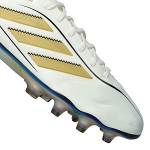 Prova la raffinatezza di una leggenda del calcio. Questa scarpa in edizione limitata è una versione speciale dell'attesissima Copa Pure 3, con tomaia in pelle Fusionskin in un'elegante colorazione bianca. I dettagli dorati, tra cui le iconiche 3 strisce, aggiungono un ulteriore tocco di classe.