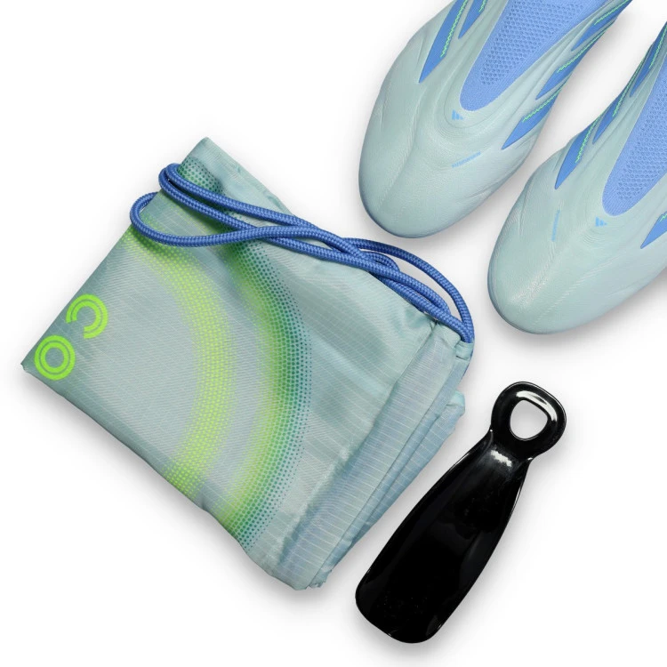 Scarpe da calcio adidas Copa Pure III Elite LL FG. In pelle, senza lacci, da usare su campi in erba naturale. D'alta gamma e disponibili nella colorazione Halo Blue-Blue Fusion-Lucid Lemon, per giocatori classici.