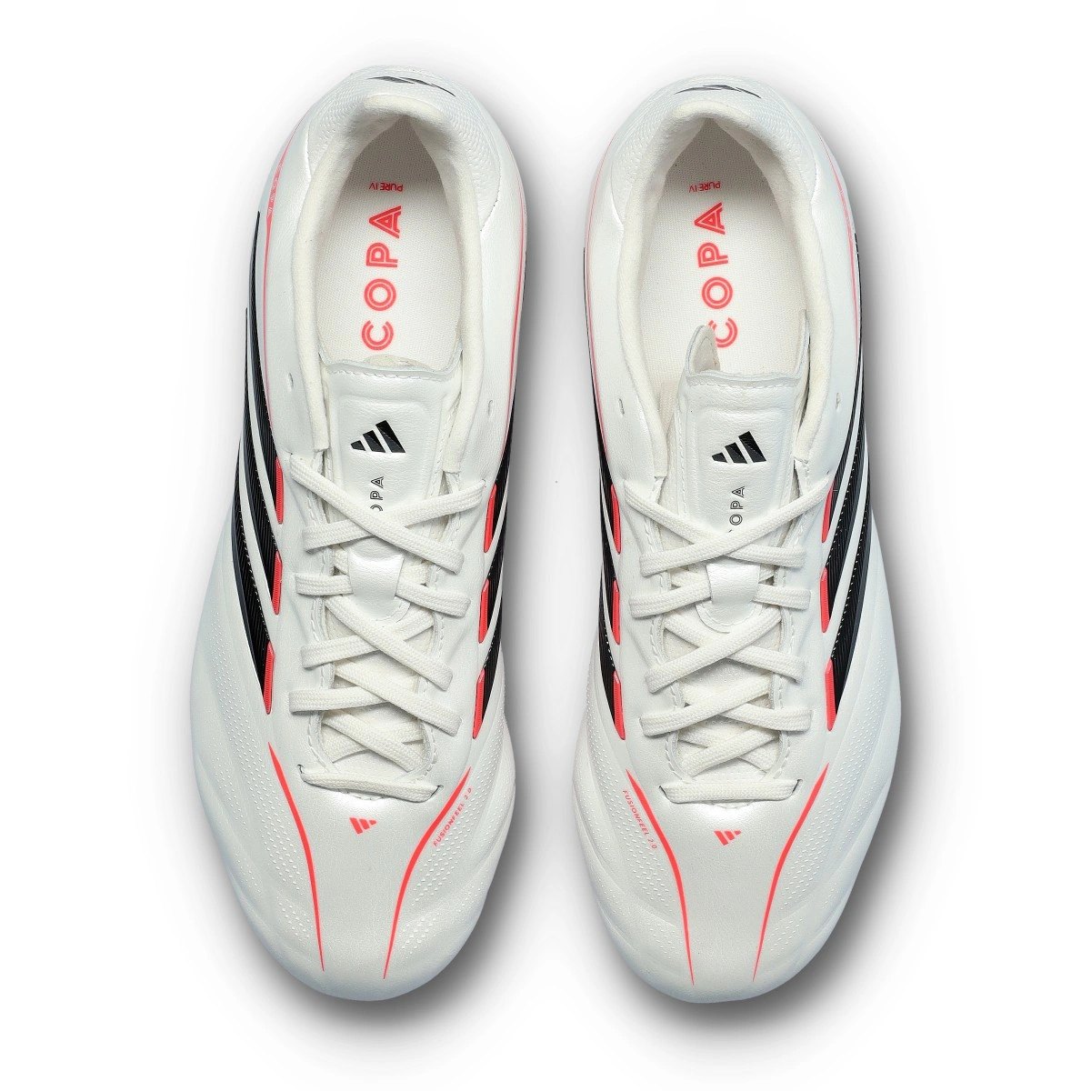 Scarpe da calcio adidas Copa Pure IV Elite FG per bambini. In pelle, da utilizzare su campi in erba naturale. Di gamma alta e disponibili nella colorazione Zero Met-Core Black-Lucid Red per giocatori classici.