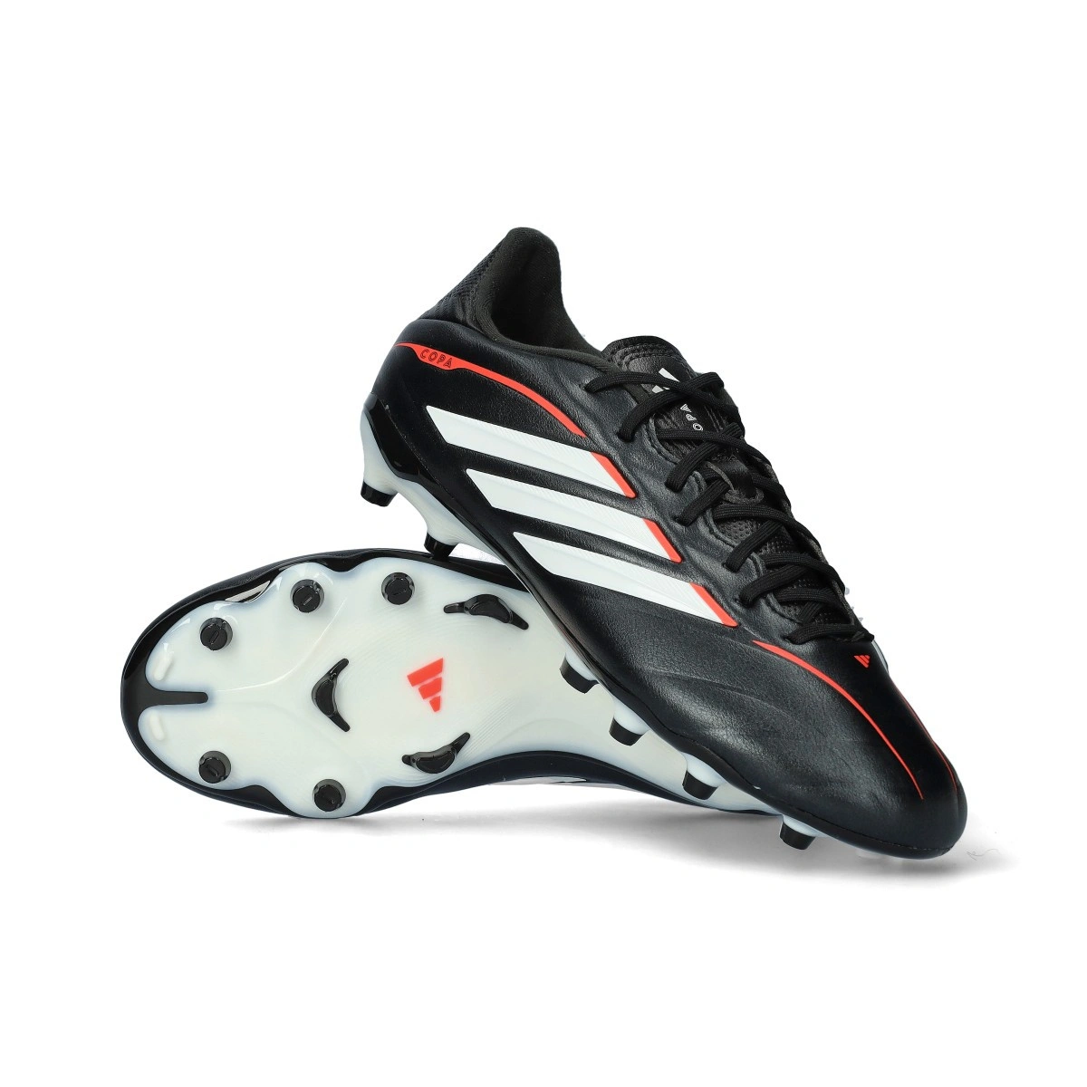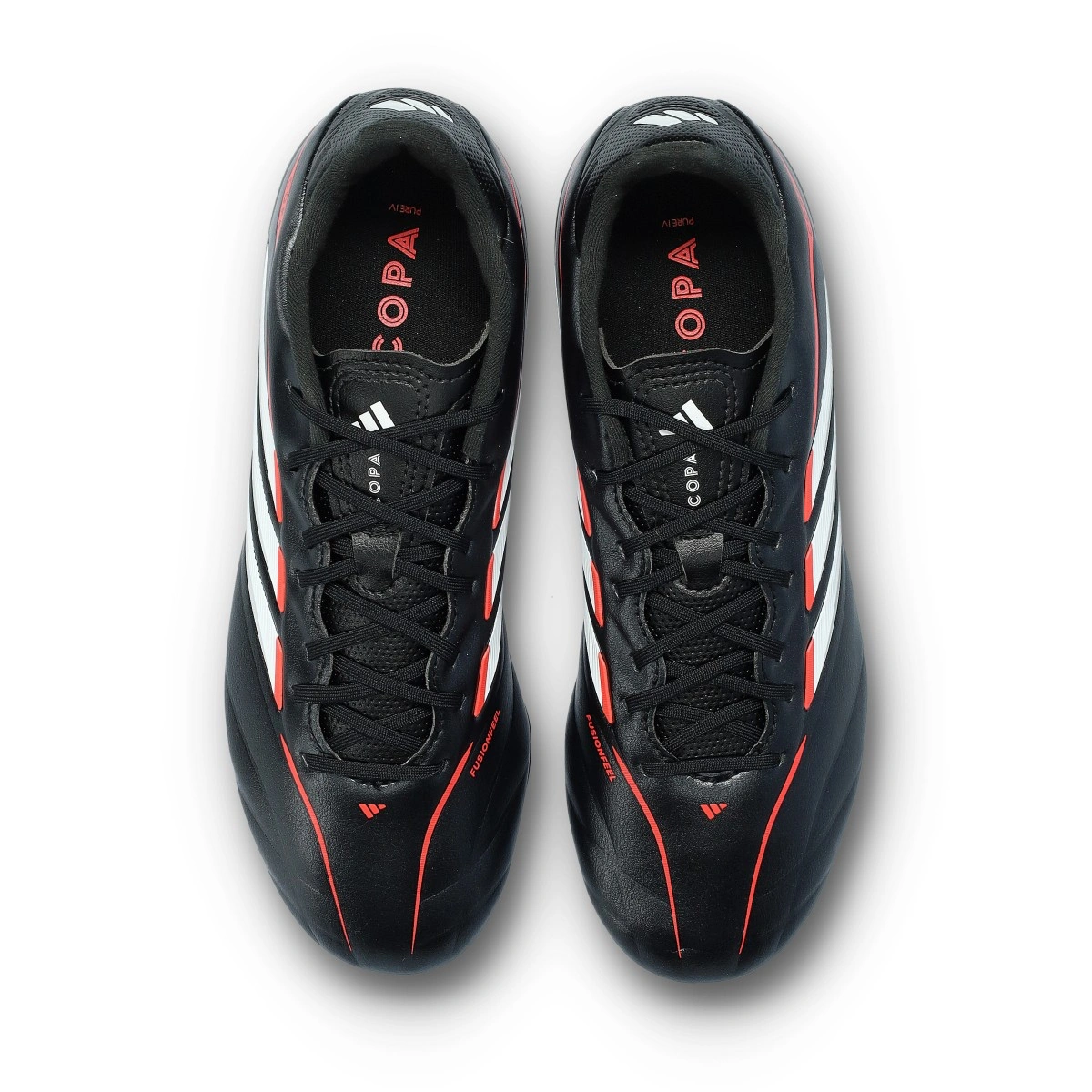 Scarpe da calcio per bambini adidas Copa Pure IV League FG. In pelle sintetica, da usare su campi in erba naturale. D'alta gamma, disponibili nella colorazione Core Black-White-Lucid Red, per giocatori classici.