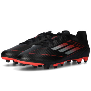 Scarpe F50 Club FG/MG della marca adidas e disponibili nella colorazione Core Black-Iron Met-Lucid Red. Di gamma base e adatte a campi in erba naturale.