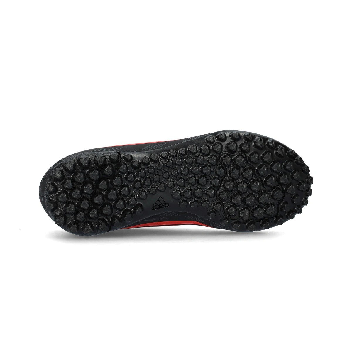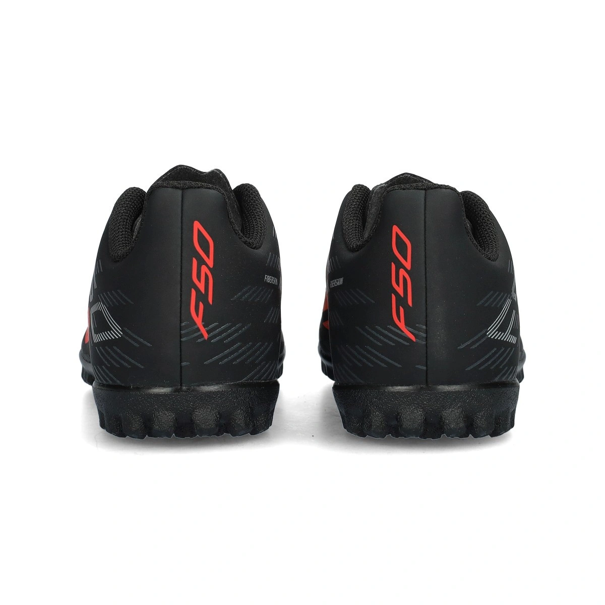 Scarpe da calcio F50 Club Turf per bambini e della marca adidas, disponibili nella colorazione Core Black-White-Lucid Red. Di gamma base, per moquette o campi in erba sintetica di seconda generazione.